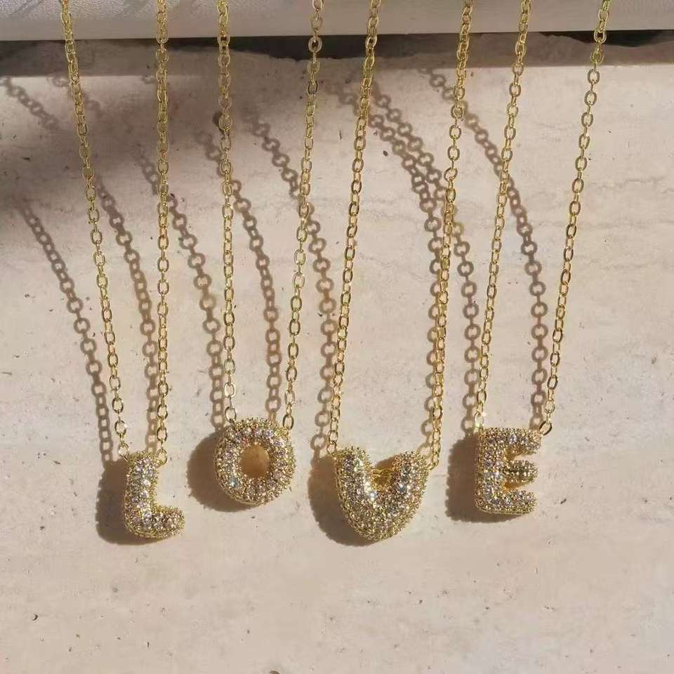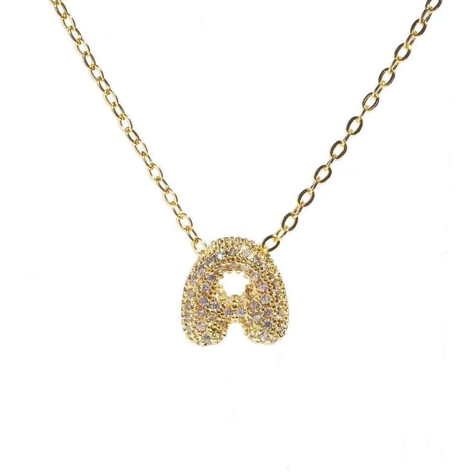 Collana con Ciondolo Iniziale in Zircone Placcato Oro 18K, Charm a Bolla con Lettera Unisex, Gioiello Alfabetico Trendy Personalizzabile