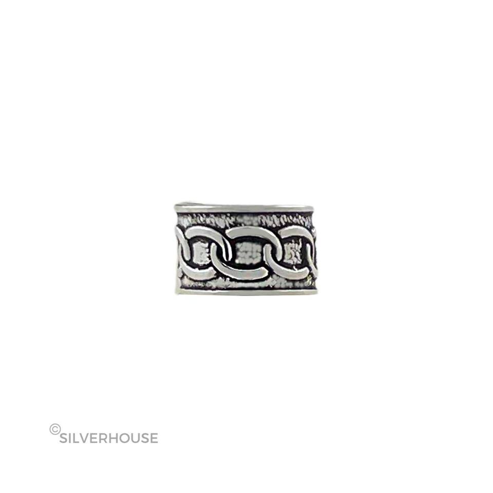 Ear Cuff in Argento Sterling Placcato Oro 18K e Platino, Design Geometrico a Elica con Catena, Zirconi e Perle, Finitura Lucida Invecchiata, 10mm Esterno