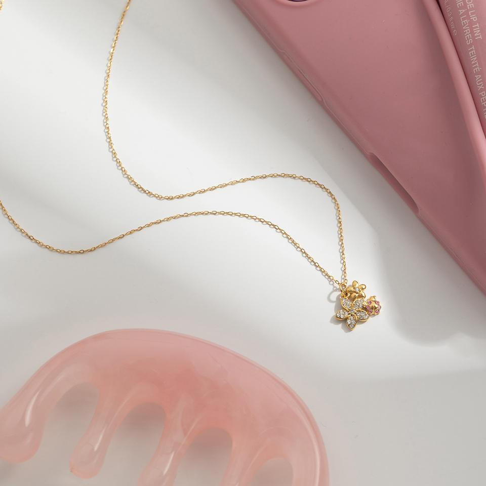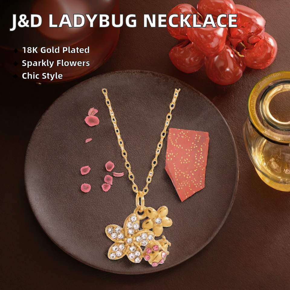 18K PVD Gold Plated Stainless Steel Link Chain Necklace with Classic Rhinestone Flowers Ladybug Pendant
