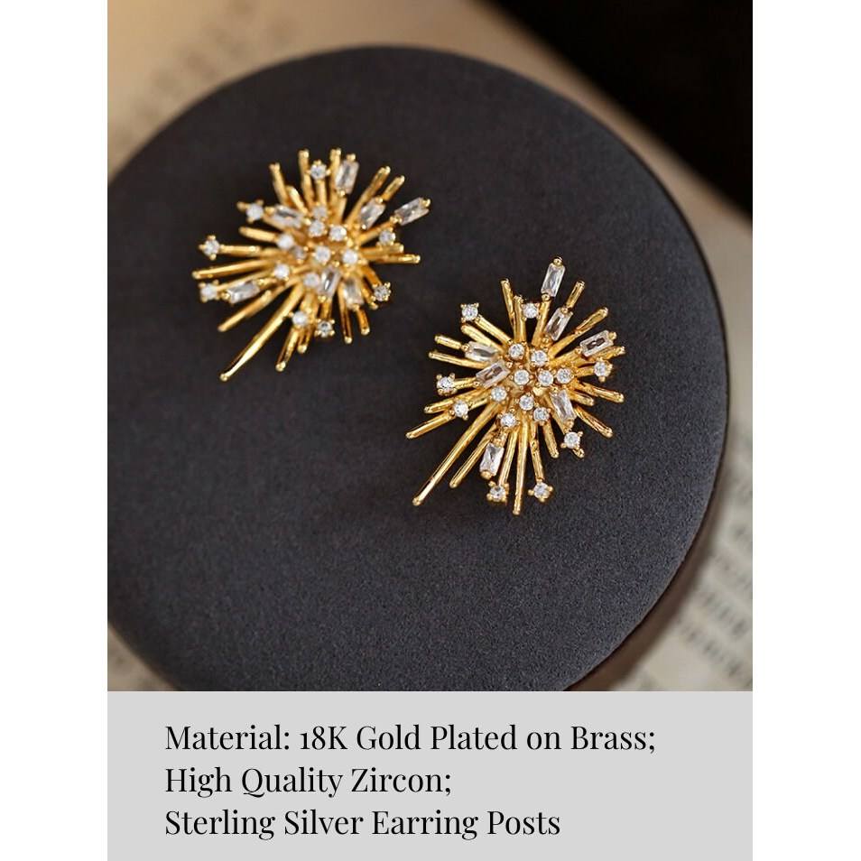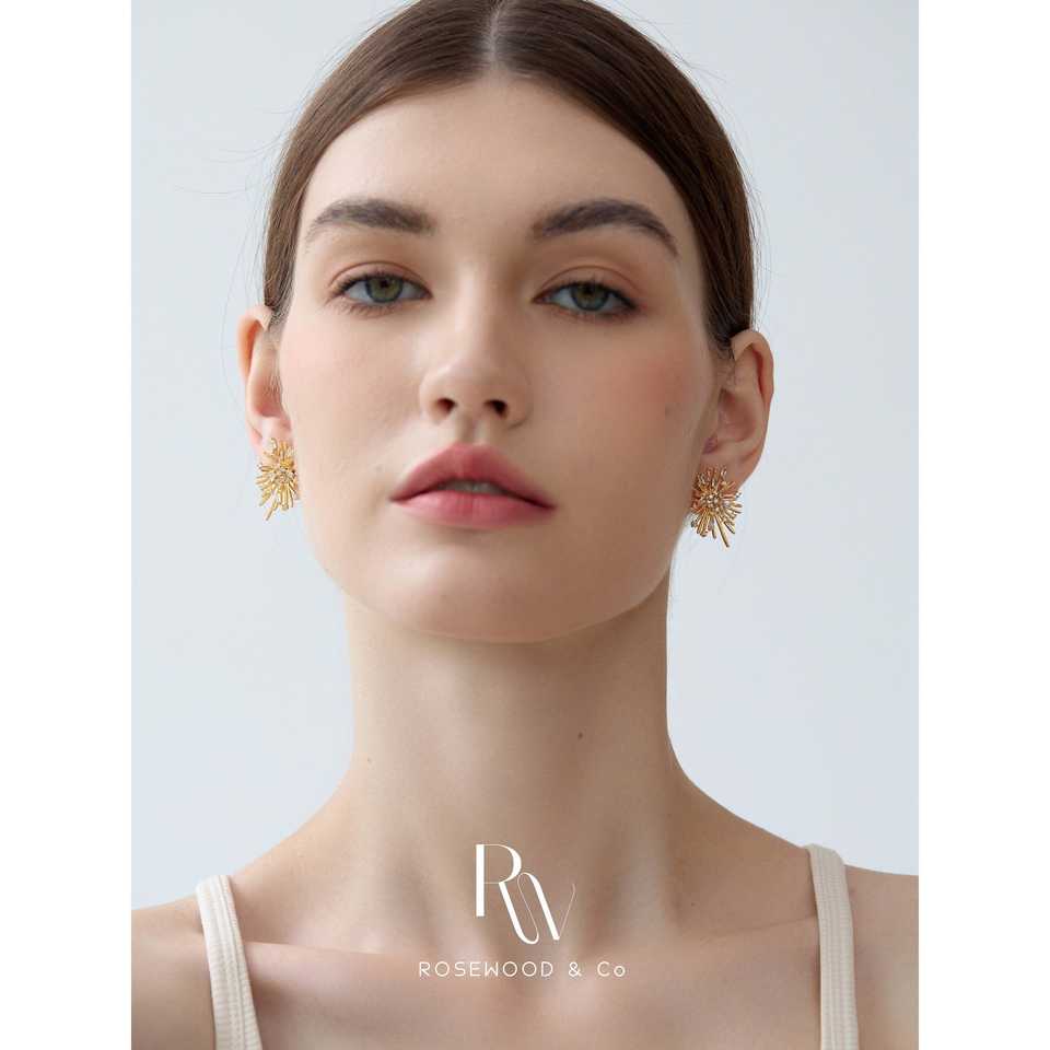 Orecchini a Perno in Oro Rosa 18K a Forma di Sole, Orecchini Scintillanti a Stella Celeste, Regalo per Lei