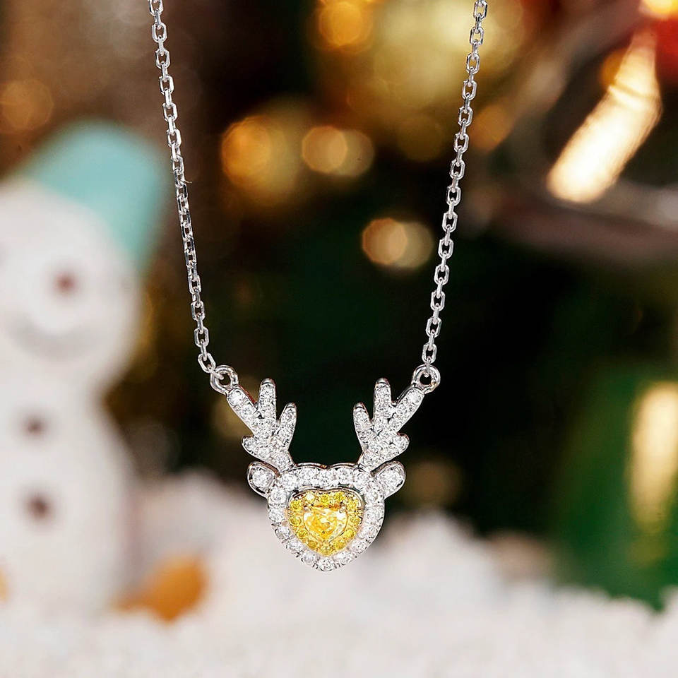 18K Yellow Gold Fashion Pendant Necklace with Real Diamond