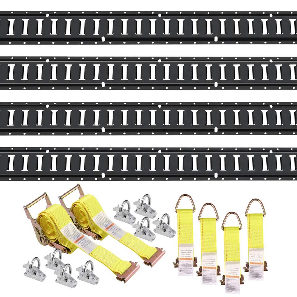Set di 18 Pezzi E-Tracks con 4 Binari in Acciaio, 8 Ancoraggi a O-Ring, 4 Fissaggi con Anello a D, Kit Binari per Fissaggio