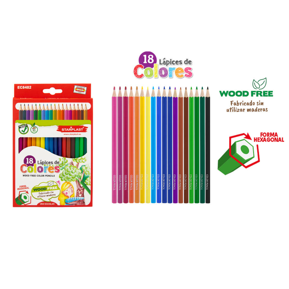 18U Plastic Colored Pencils Wood-Free and Versatile for Art and Creativity