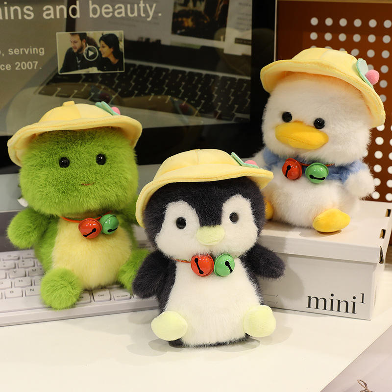 18cm Cute Bell Palm-Sized Desk Companion Series Panda Penguin Little Dinosaur Plushie Animal Vending Claw Machine Toys