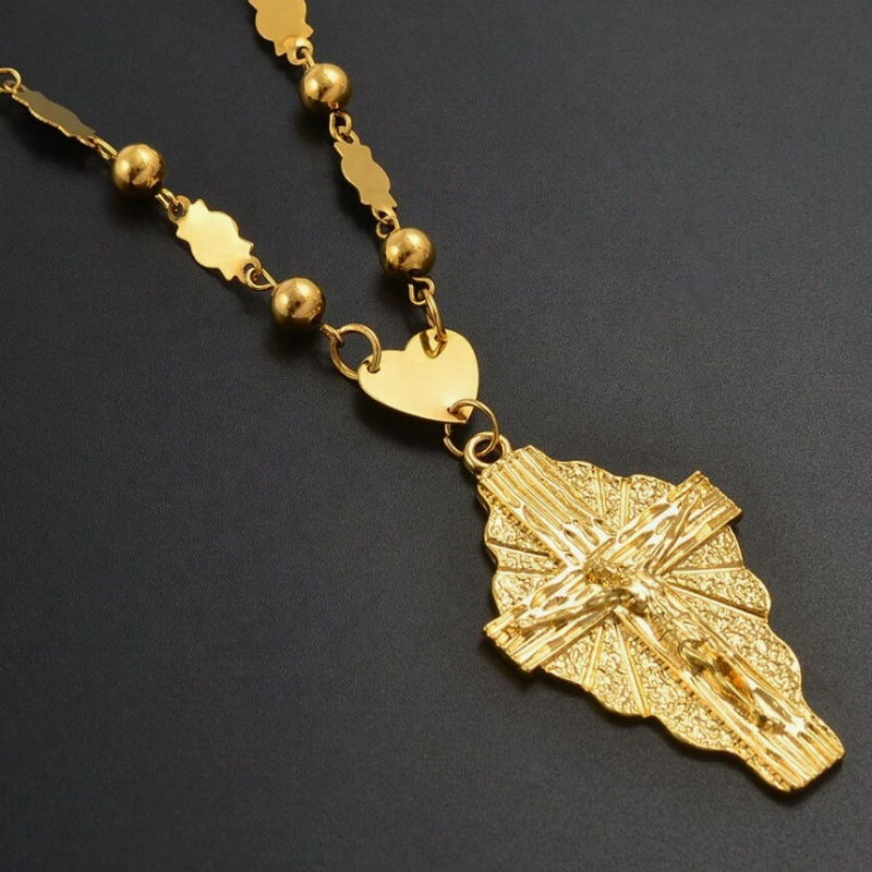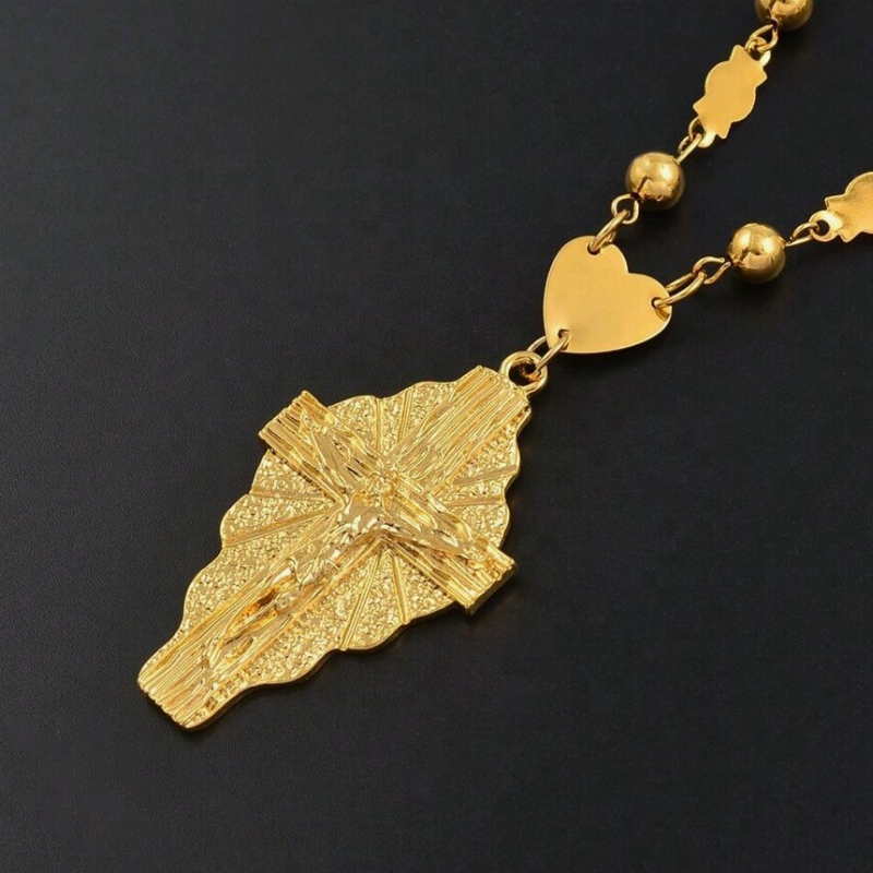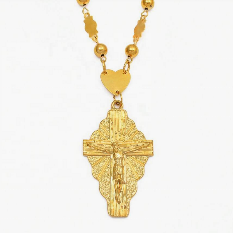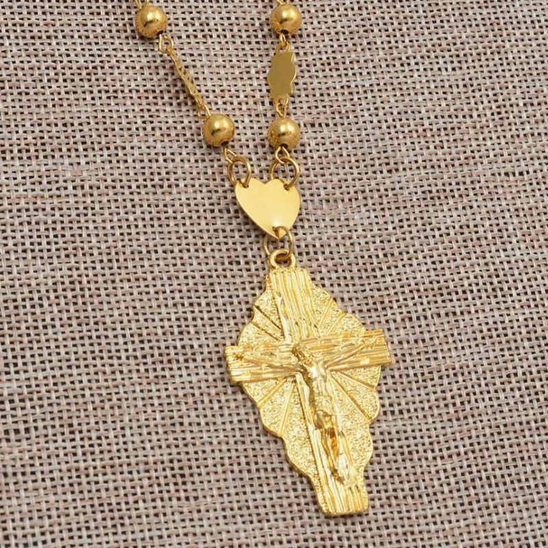 Collane a catena con perline a forma di sfera con ciondolo in oro 18k per uomini e donne Hawaii Micronesia ciondolo lungo Charm collana di gioielli religiosi gesus
