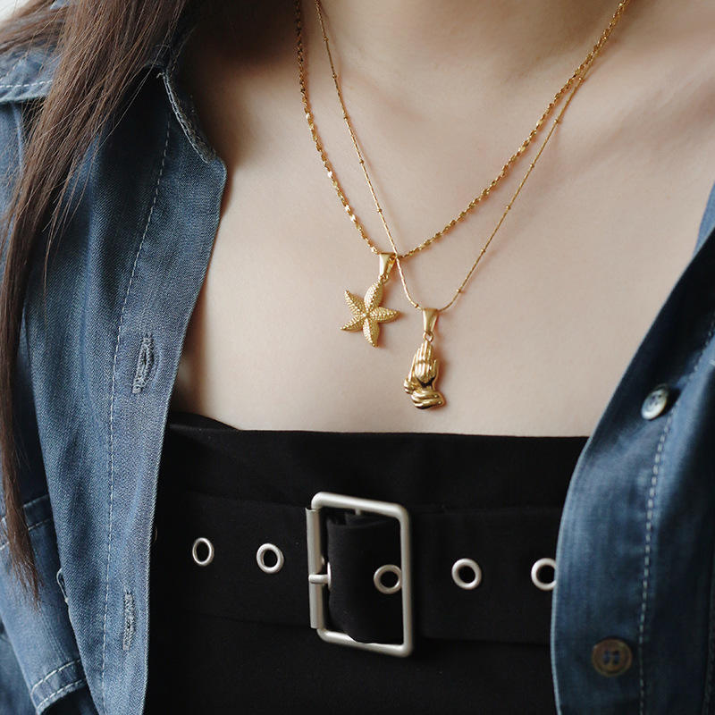 Ciondolo Mani in Oro 18k, Gioielli Religiosi Buddisti, Collana con Mani in Preghiera in Acciaio Inossidabile per Uomo e Donna