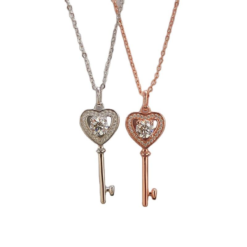 Collana con catena a clavicola del palazzo con ciondolo in oro rosa con chiave in oro bianco 18 carati per regalo di natale personalizzato