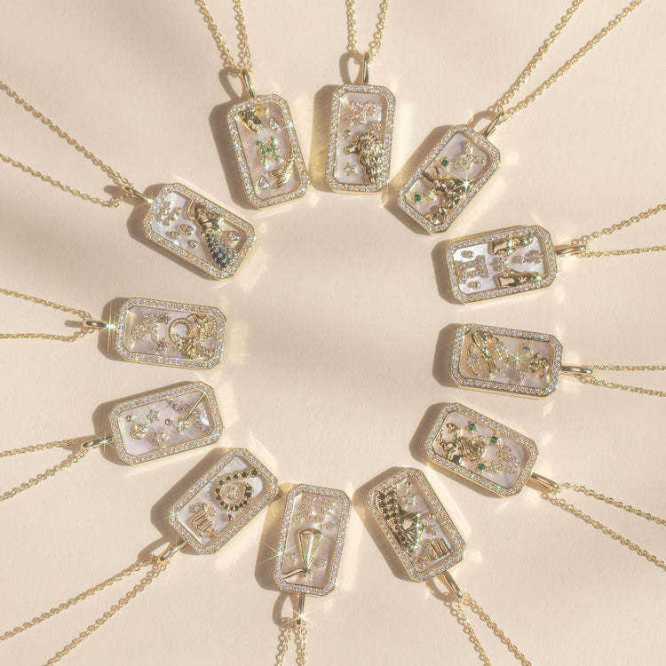 Collana con Ciondolo Segno Zodiacale in Ottone Placcato Oro 18k, Gioiello da Donna con 12 Segni Zodiacali