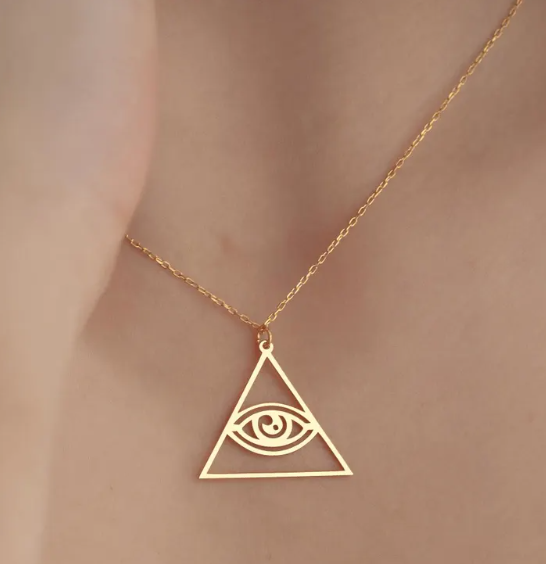 Collana Placcata Oro 18k con Pendente Occhio del Terzo Occhio, Triangolo Illuminati, Piramide, Occhio di Horus, Gioiello Egiziano Antico, Amuleto Vedente