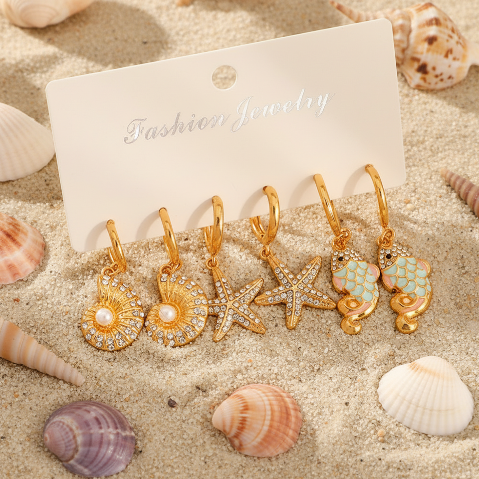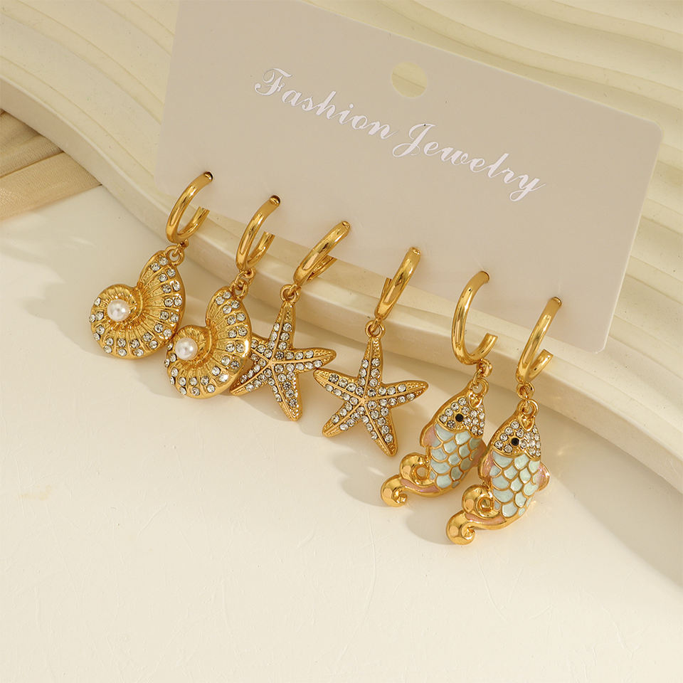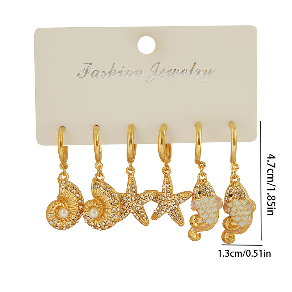 18k Starfish studded Diamond Jewelry Set Fashionable Beach Vacation Style Alloy Women's Jewelry