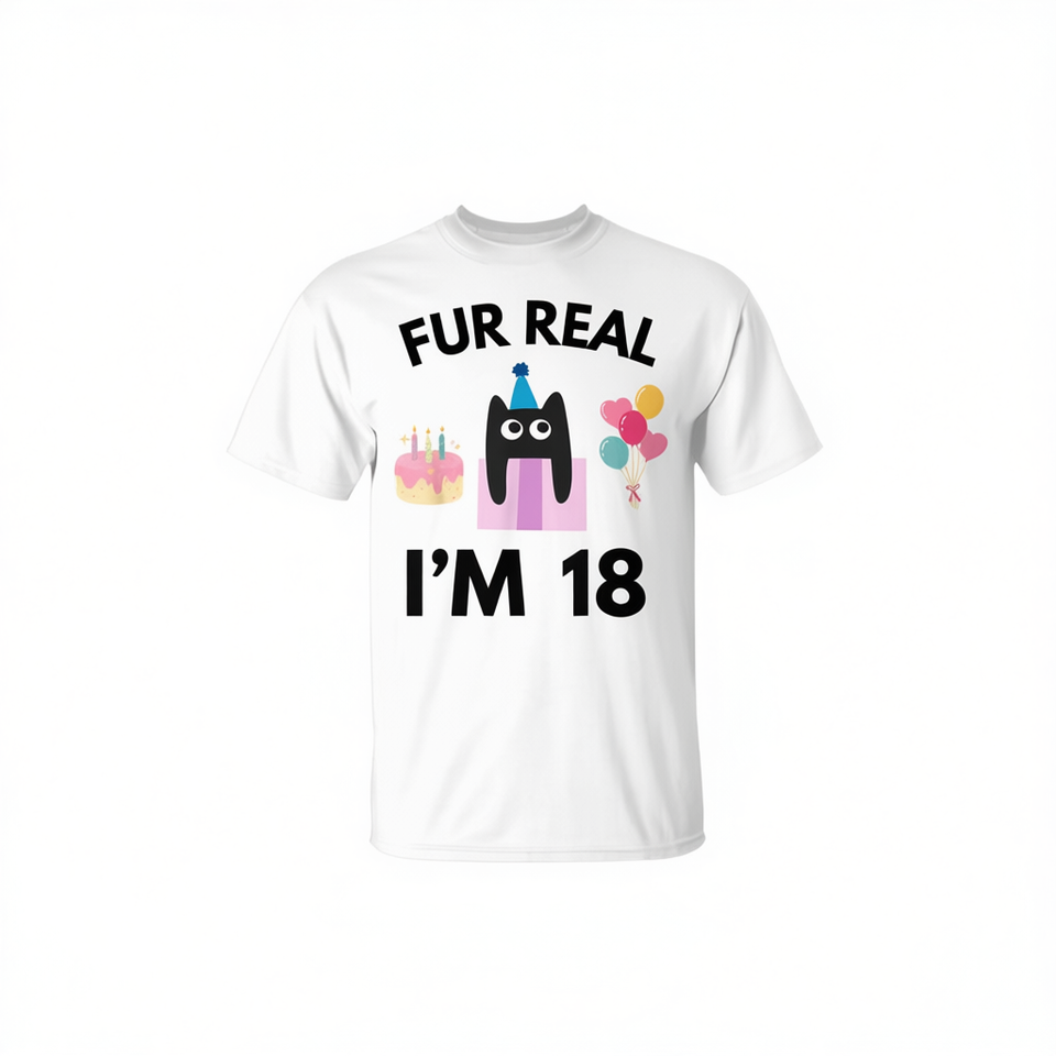 Maglietta per il 18° Compleanno per Amanti dei Gatti, 'Fur Real' - Regalo Promozionale per Chi Ama i Gatti da 18 Anni