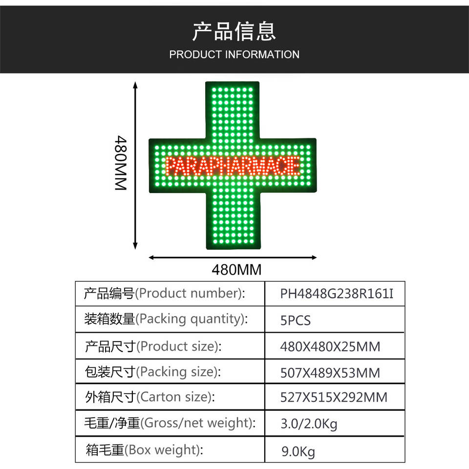 Nome del prodotto:19*19 ''alto luminoso interno acrilico LED farmacia croce segno aperto