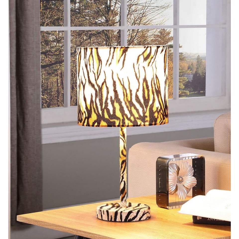 Lampada da tavolo in metallo con stampa tigre in finta pelle scamosciata da 19,25 pollici