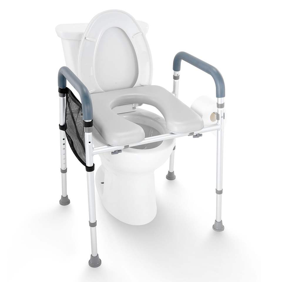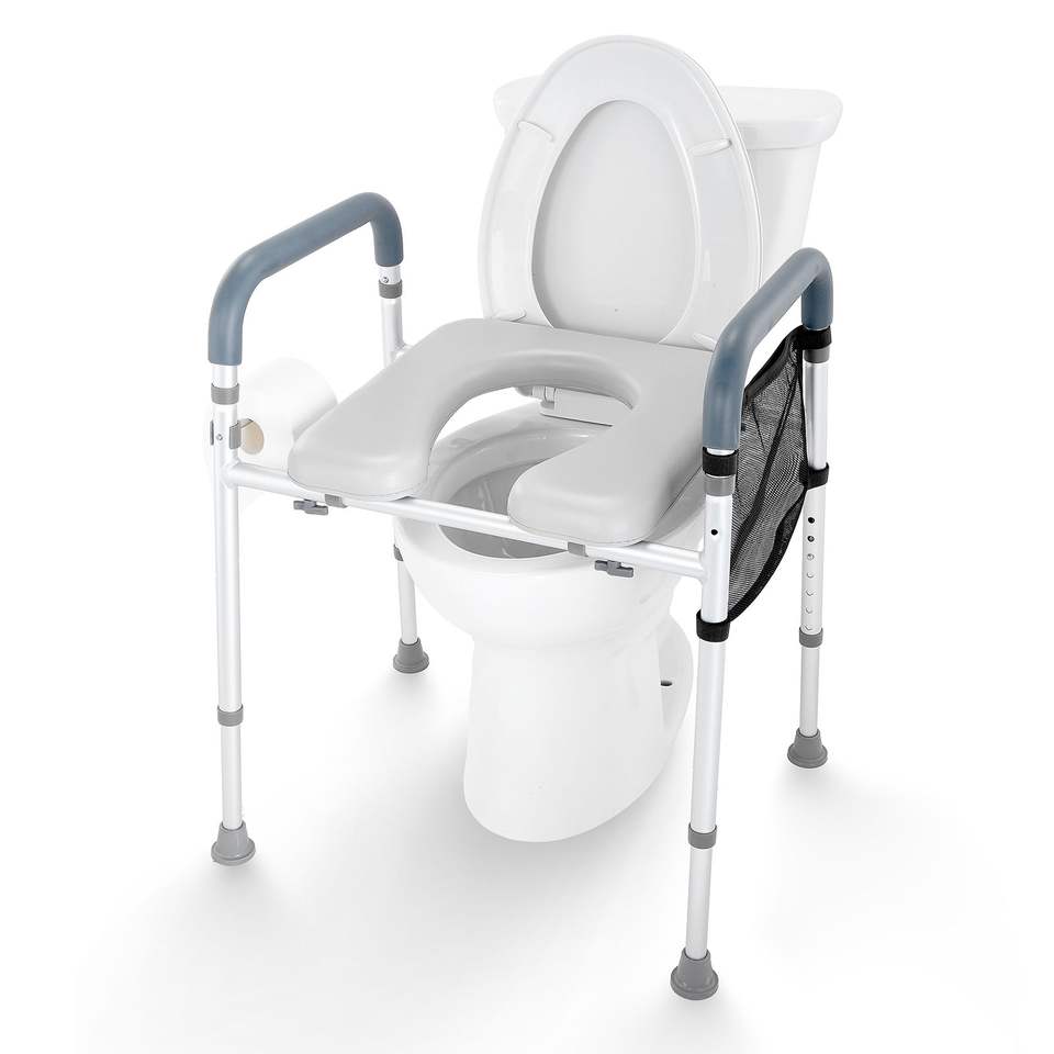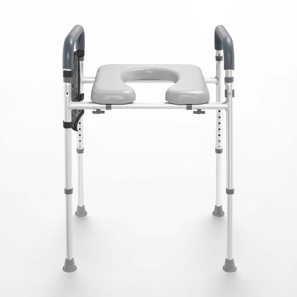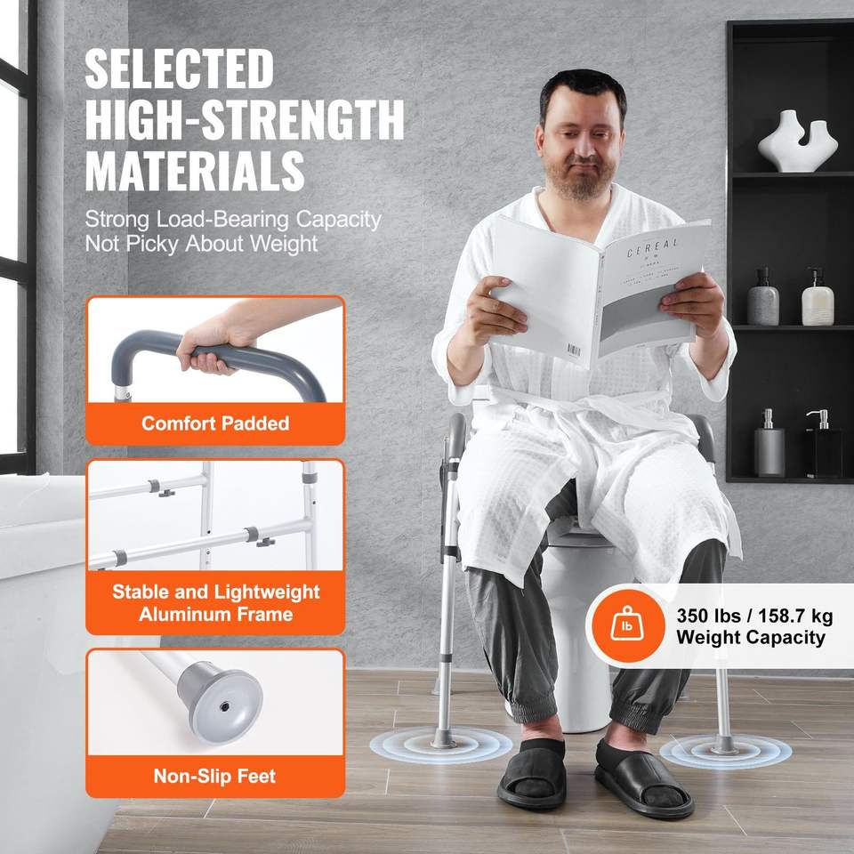 Sedile WC Regolabile in Altezza 19.3''-25.2'' con 7 Posizioni, Imbottito e Confortevole, Telaio in Alluminio, Capacità 350 libbre, Attrezzatura di Sicurezza per Bagno