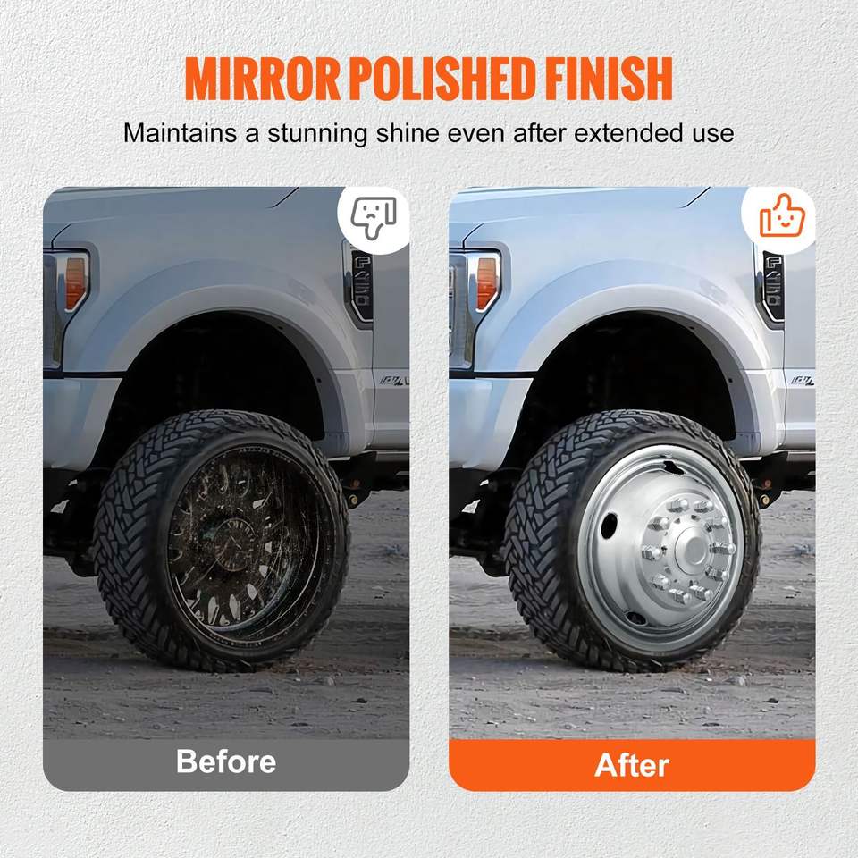 Simulatori di Ruote per Camion da 19,5 Pollici a 10 Fori, Kit in Acciaio Inox 304 con Finitura Lucida a Specchio, 2 Ruote Anteriori e 2 Posteriori