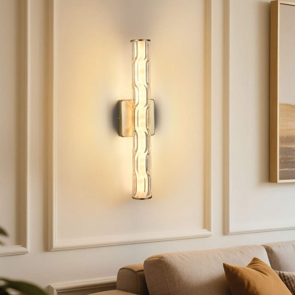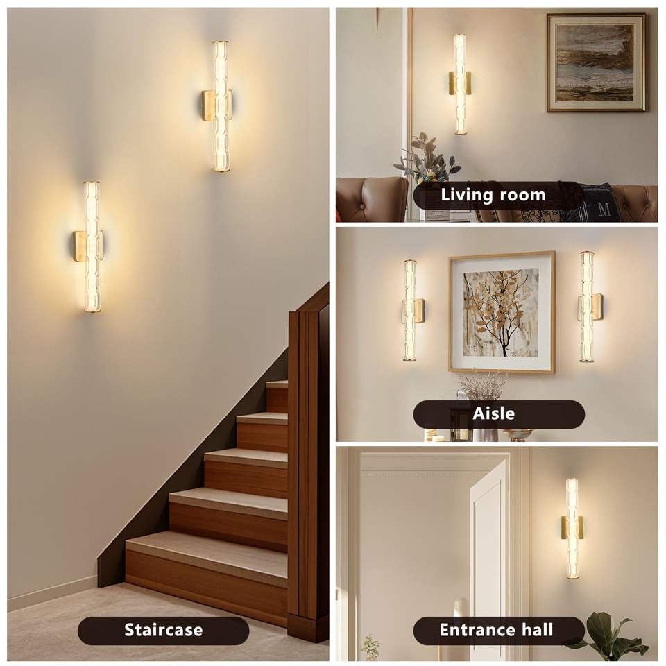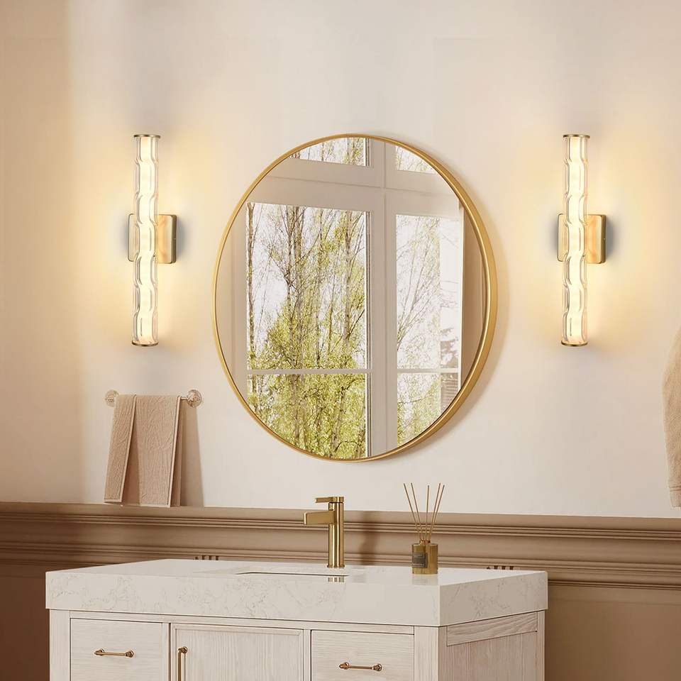 Applique da Parete Moderna Singola 19.7 Oro con Cristallo K9 Migliorato, Illuminazione in Bronzo per Camera da Letto, Van, Bagno - Set Applique da Parete