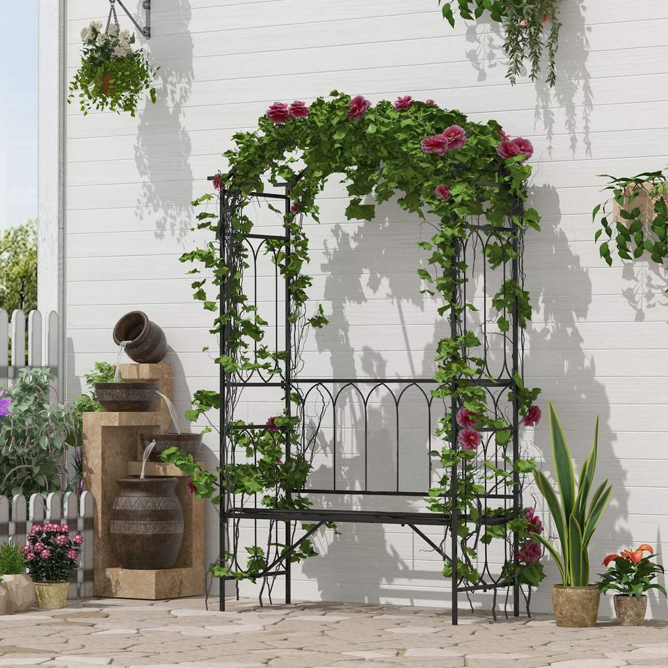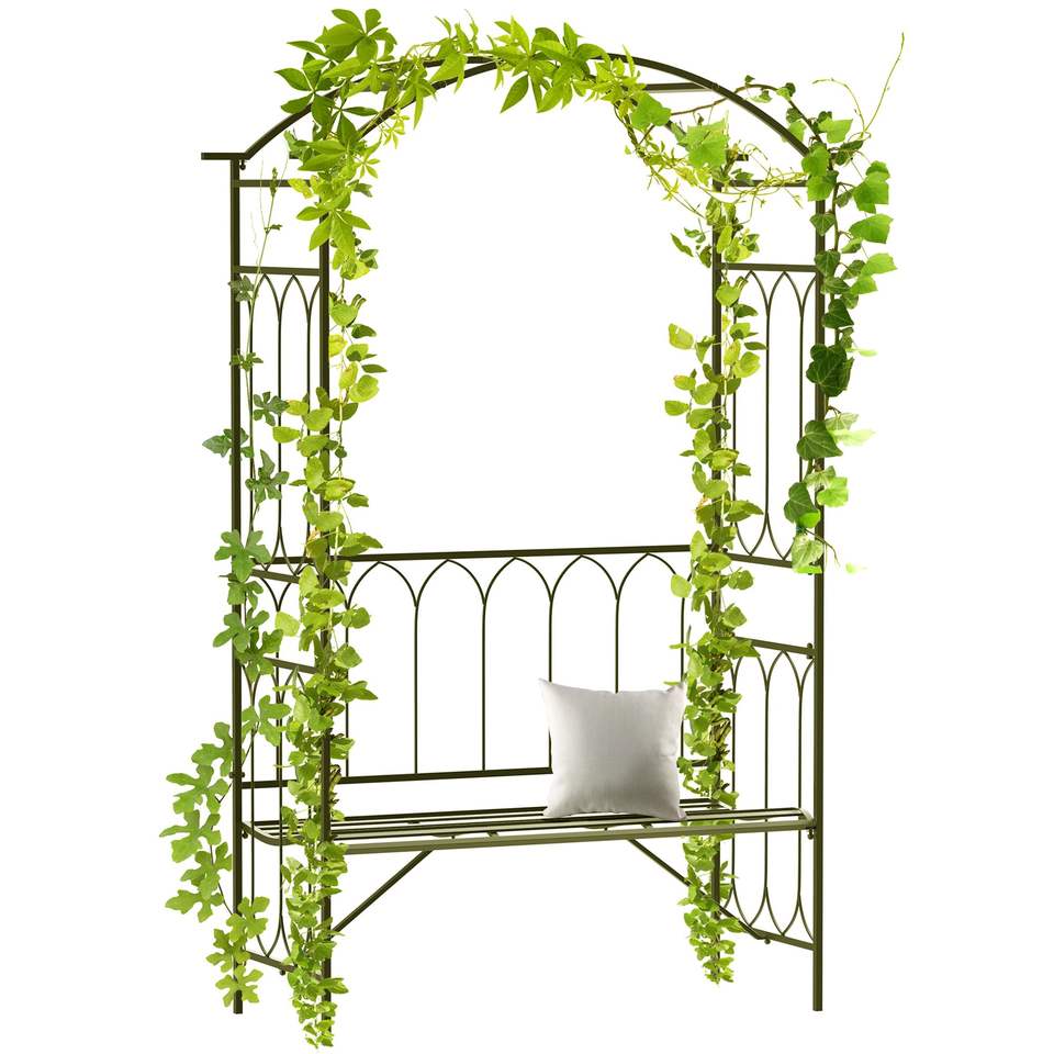 Arco da Giardino in Metallo 50 cm L x 203 cm H con Panchina Relax e Decorazioni Intagliate per 2 Persone, Ideale per Matrimoni e Patii