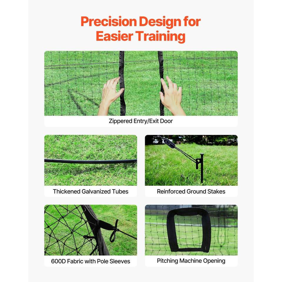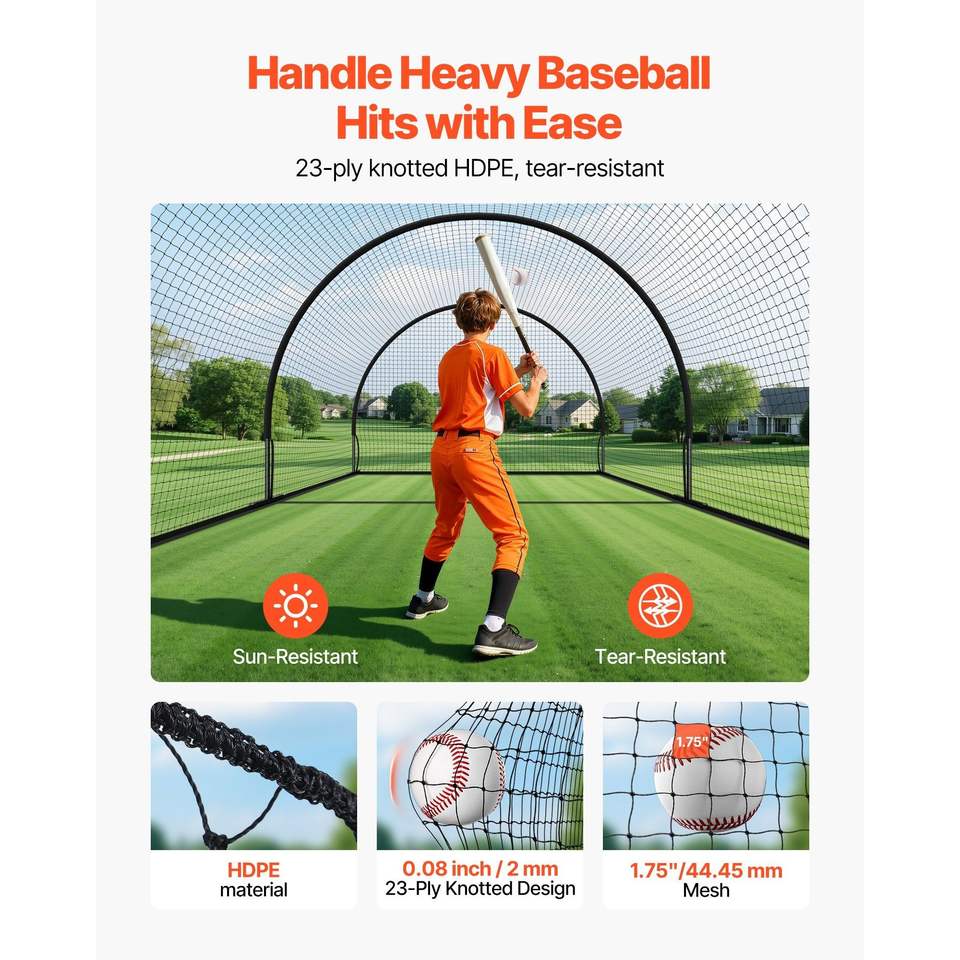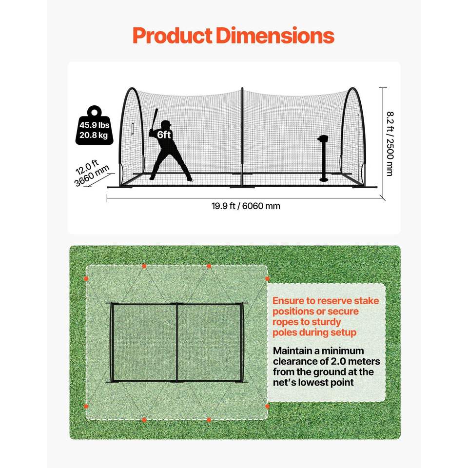 Gabbia da Battuta Portatile Autoportante 19.9 X 12.0 X 8.2 FT, in HDPE Annodato a 30 Strati, Attrezzatura per Allenamento di Battuta