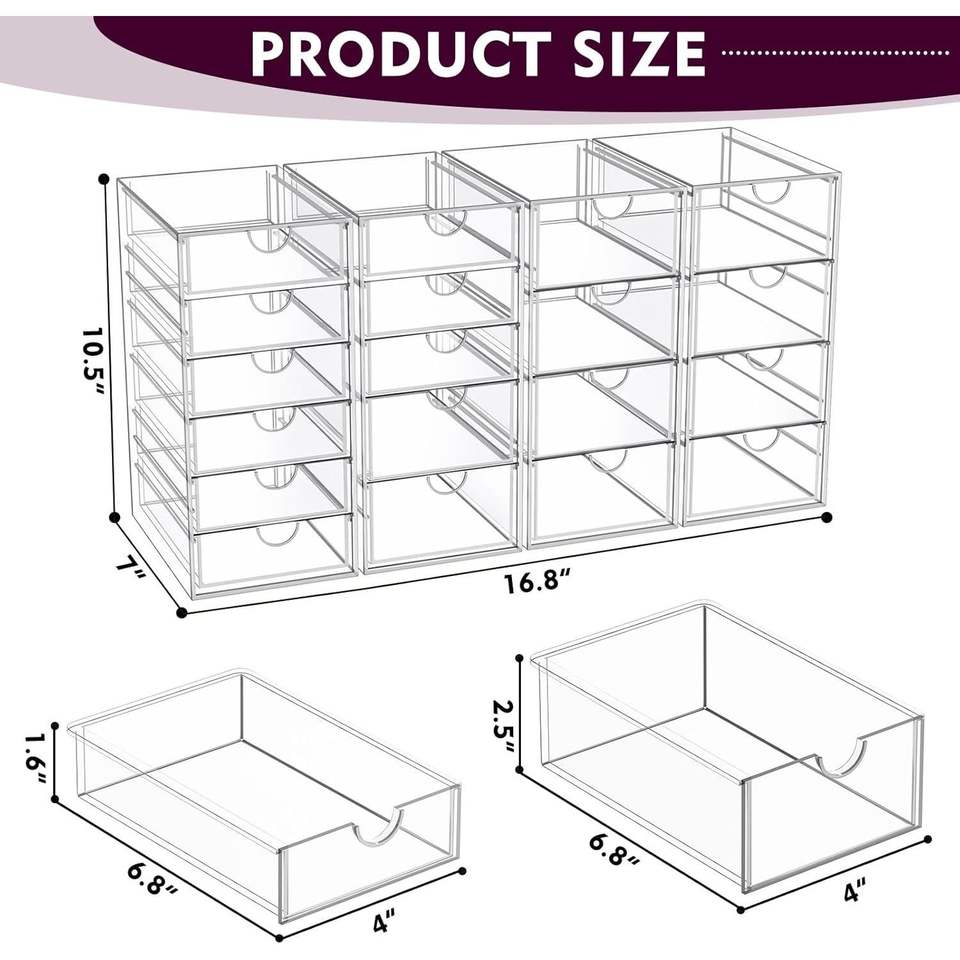 Organizzatore per Trucchi in Acrilico con 19 Cassetti, Set da 4, Cassetti Trasparenti per Bagno, Organizzatore per Cosmetici, Organizzatori per Trucchi