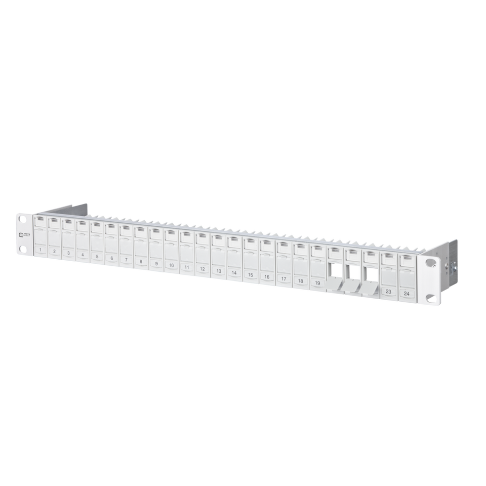 Supporto Modulare 19 Pollici 1U 24 Porte Grigio Chiaro Non Caricato, Schermato