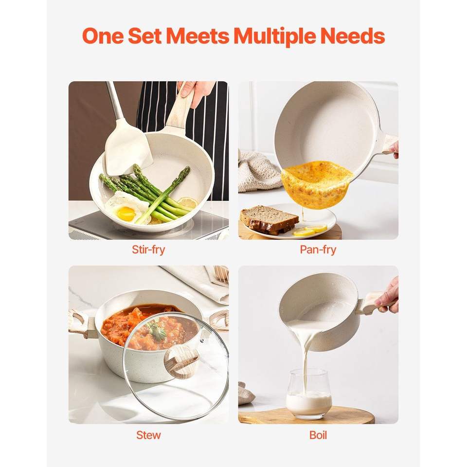 19-Piece White Granite Nonstick Induction Kitchen Cookware Pots and Pans Set