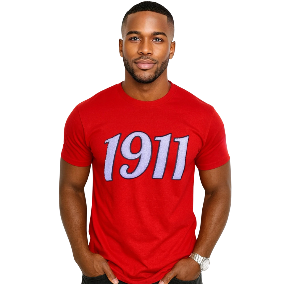 Chenille T Shirt Red Cotton Crewneck KAP Greek Fraternity Apparel Classic Collegiate Style Embroidered Crest Tee