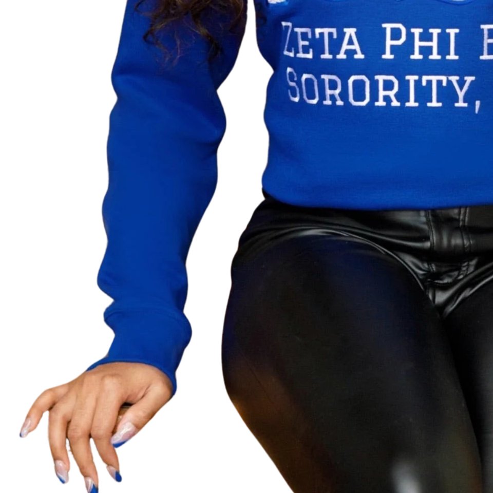 1920 Z Phi B Chenille Sweatshirt Cotton Fleece Embroidered Greek Sorority Zeta Phi Beta Black Pullover Crewneck for Women