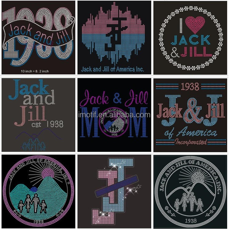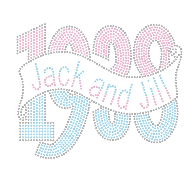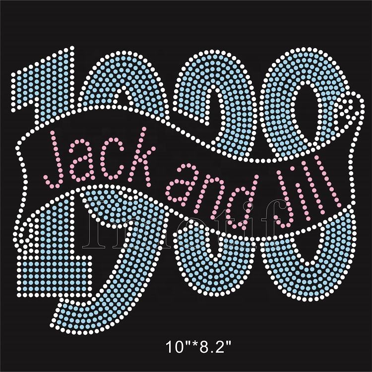 1938 Bling Crystal Logo Design Jack Jill of America Hotfix Iron Patch Rhinestone Transfer Motif for Clothes