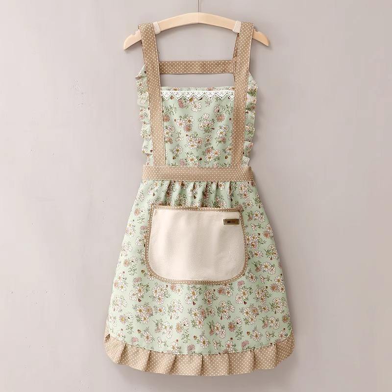 Grembiule da Chef Verde in Cotone e Pelle Stile Anni '40