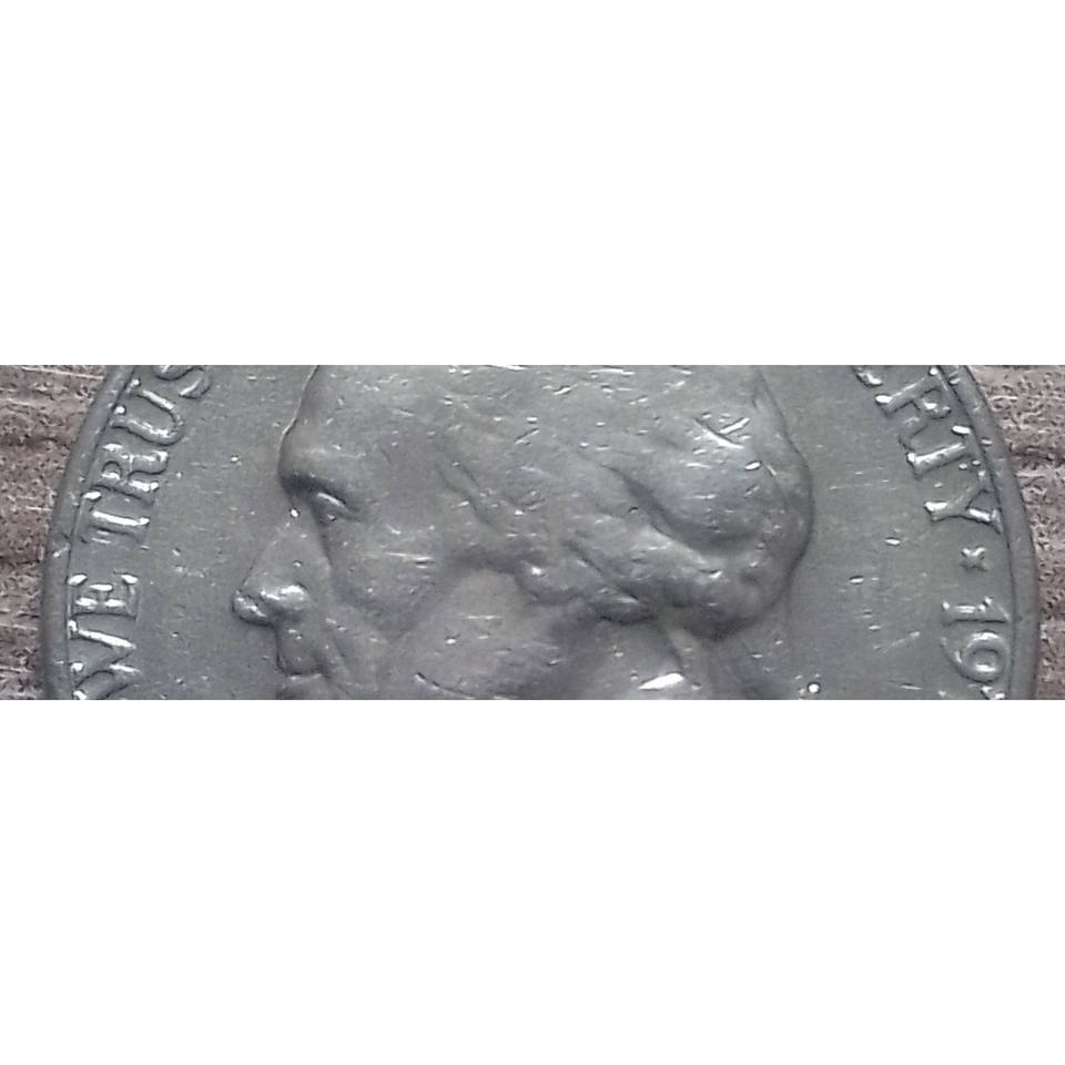 1974 Jefferson Nickel with Nose Point Splitted and Lettering Of "E-Pluribus "