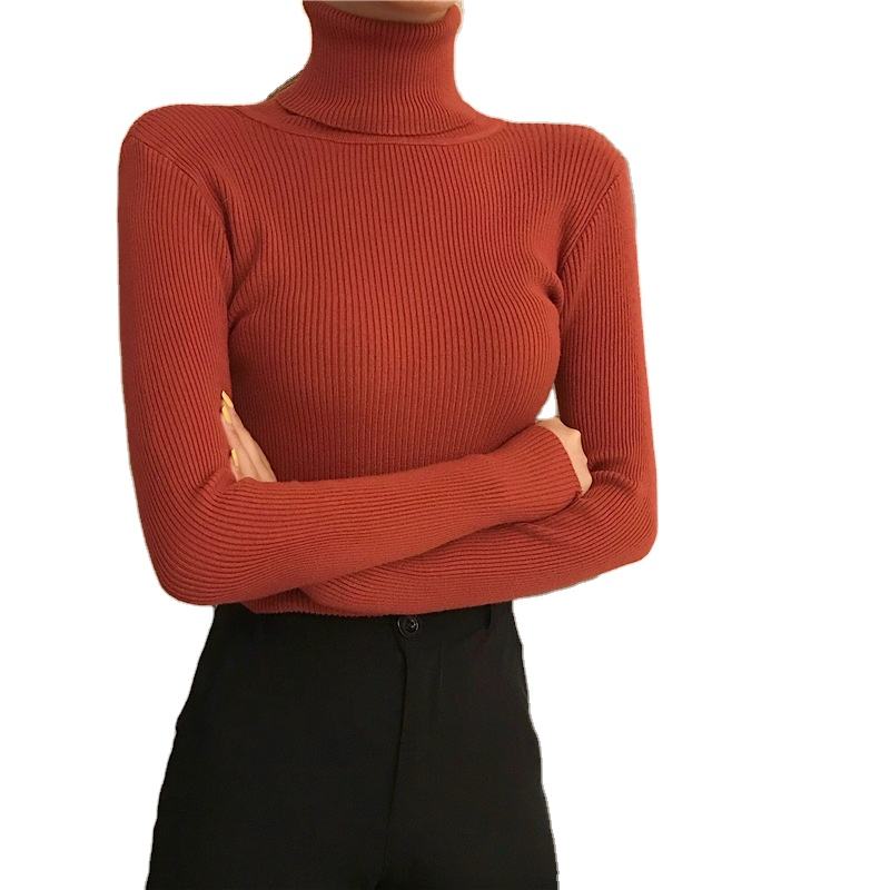 19 opzioni di colore dolcevita a maniche lunghe autunno e inverno con risvolto all'interno del maglione pullover sottile da donna maglione aderente in maglia