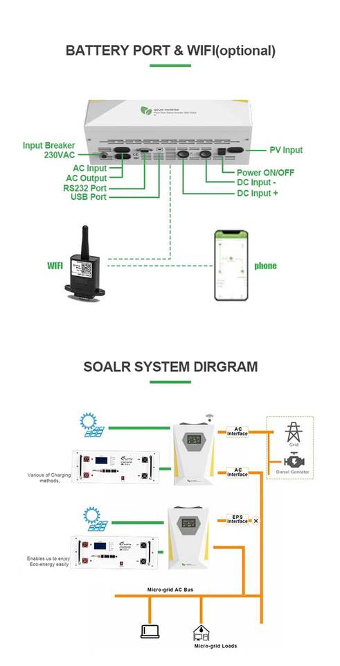 Inverter Solare Ibrido Intelligente da 1KW a 15KW con Doppia Uscita, Connesso alla Rete, Trifase e Monofase, con MPPT e UPS