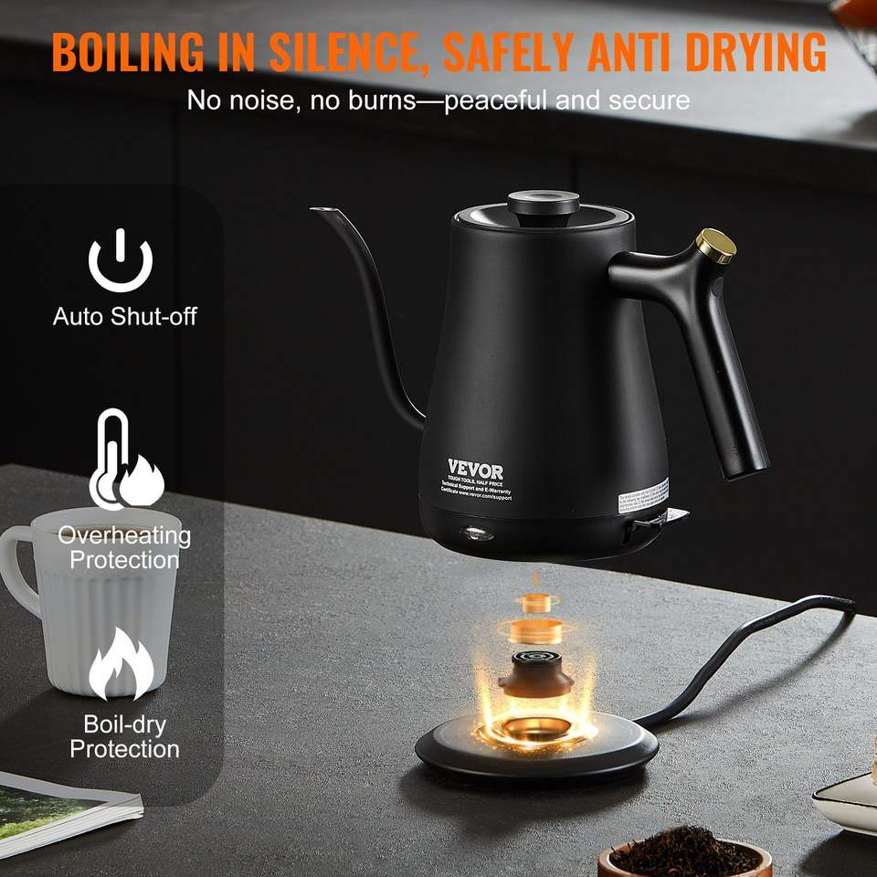 Bollitore Elettrico a Collo d'Oca da 1L, 1200W, Riscaldamento Rapido, Acciaio Inossidabile 304 per Alimenti, per Caffè e Tè, Bollitore per Acqua Calda