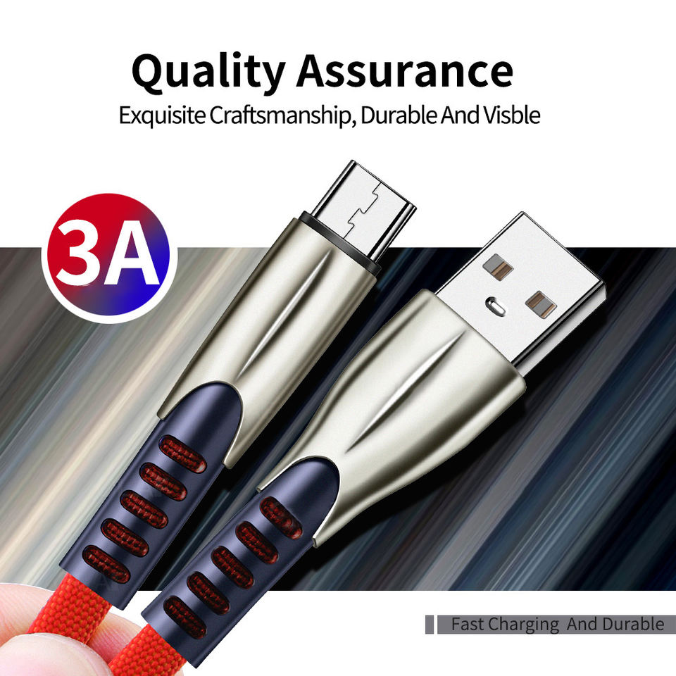 Cavo Micro USB Tipo C 1M 2M 3M 3A in Lega di Zinco per Ricarica Rapida e Trasferimento Dati per Samsung Huawei Xiaomi Telefoni Android