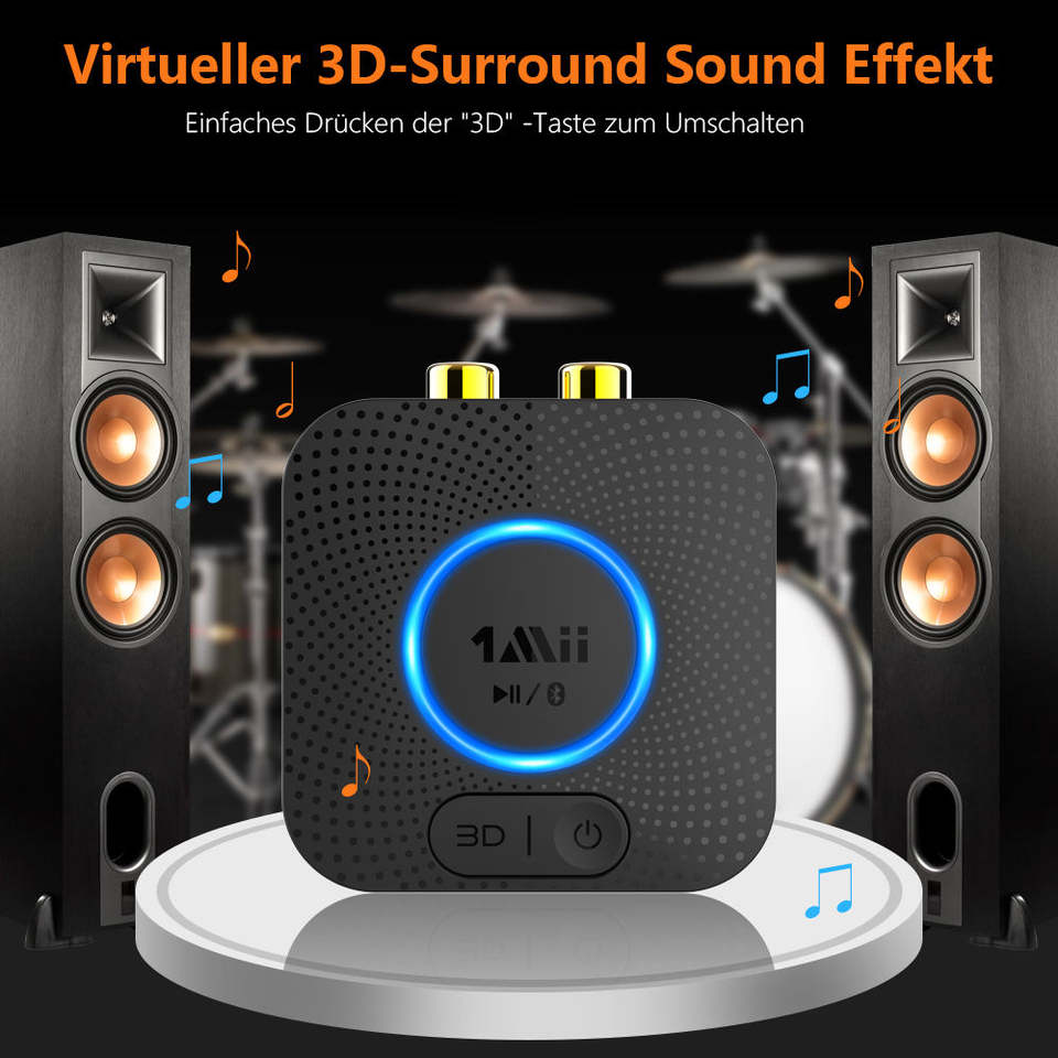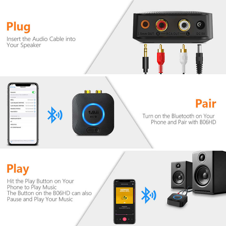 Ricevitore Audio Bluetooth 5.1 1Mii B06HD con Uscita AUX 3.5mm e RCA, Adattatore Bluetooth Stereo per Altoparlanti, Amplificatori, Cuffie
