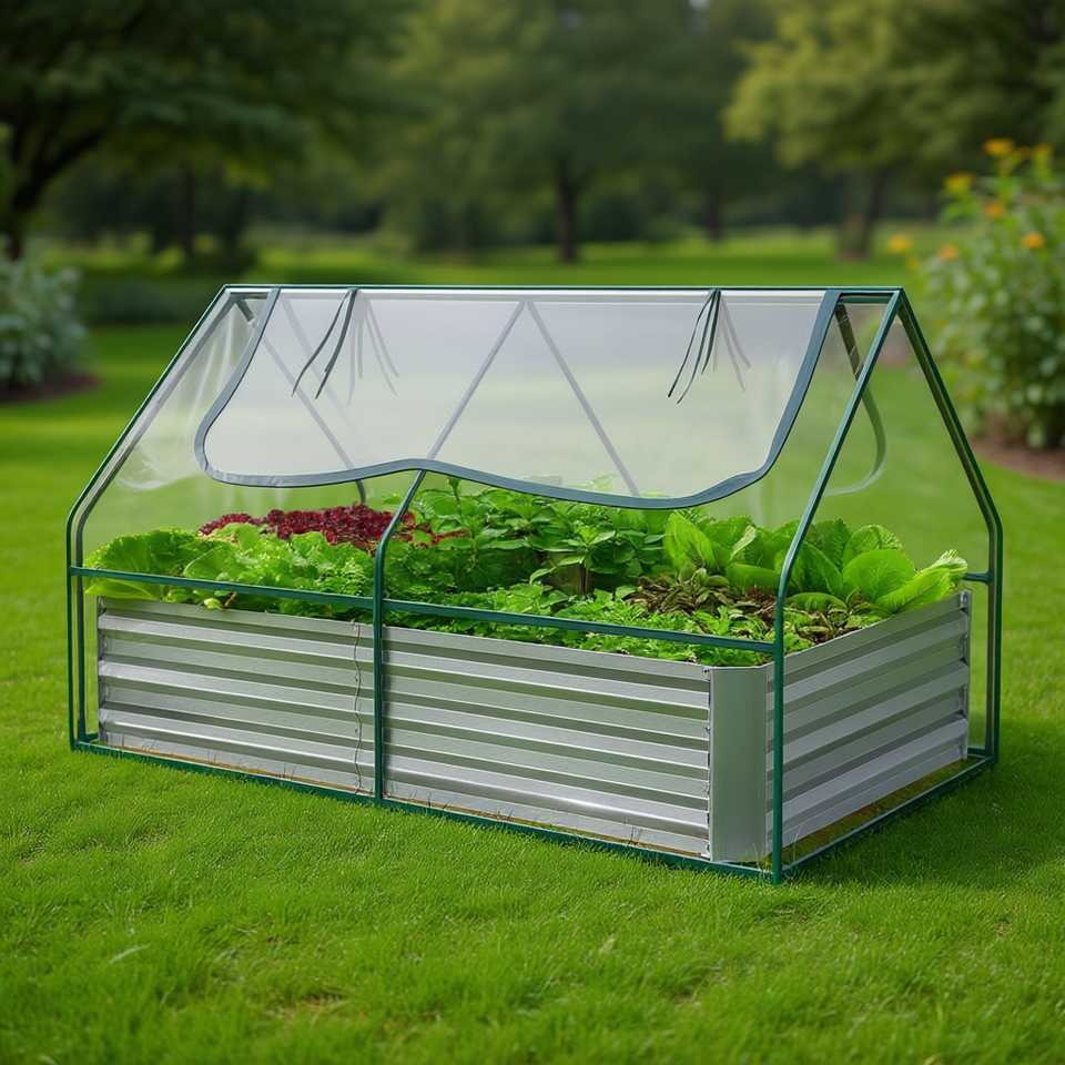 Fioriera rialzata 6 x 3 x 3 piedi in acciaio zincato con copertura per serra per giardini e frutteti