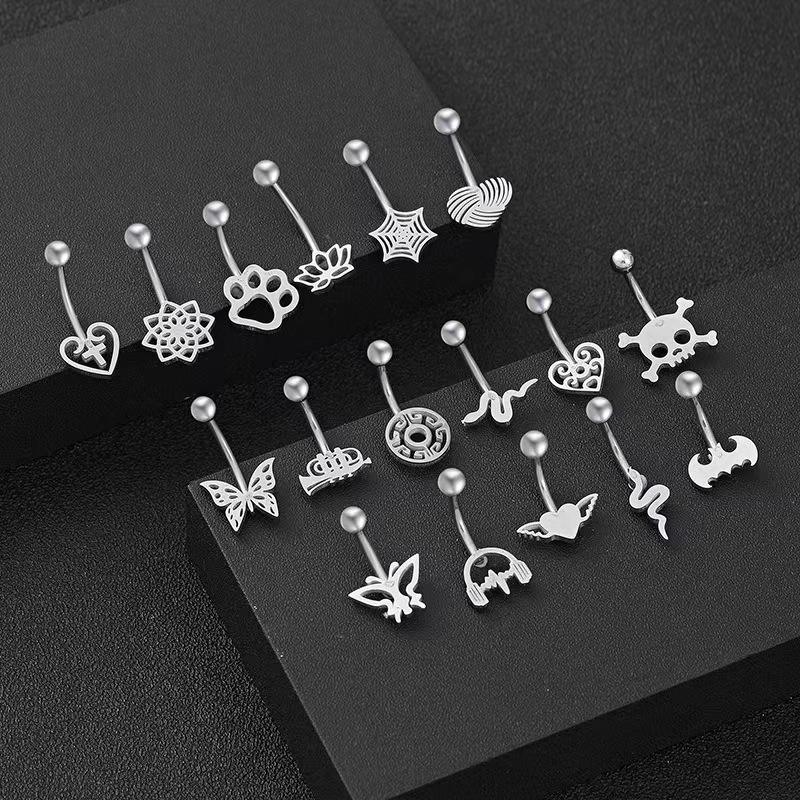 1 pezzo di moda in acciaio inox curvo farfalla fiore Piercing all'ombelico per le donne ragazze Ombligo cuore teschio di serpente anello ventre