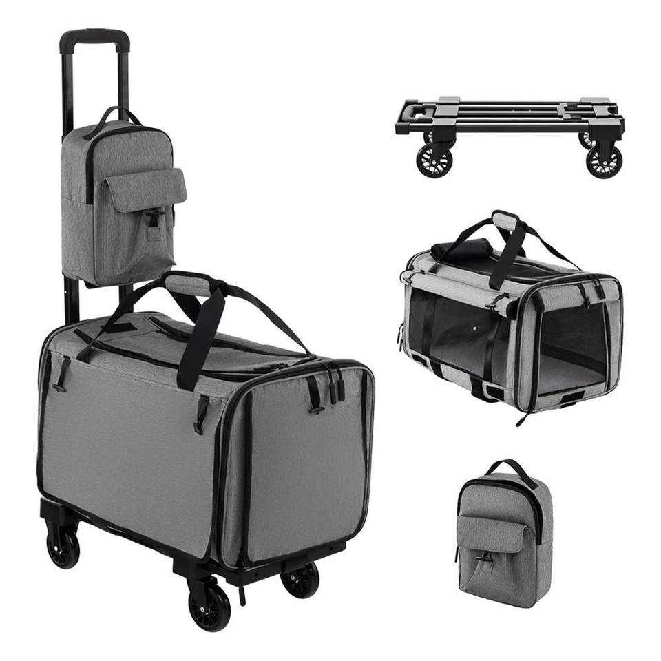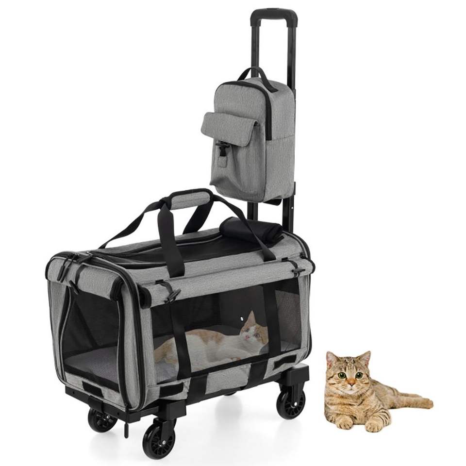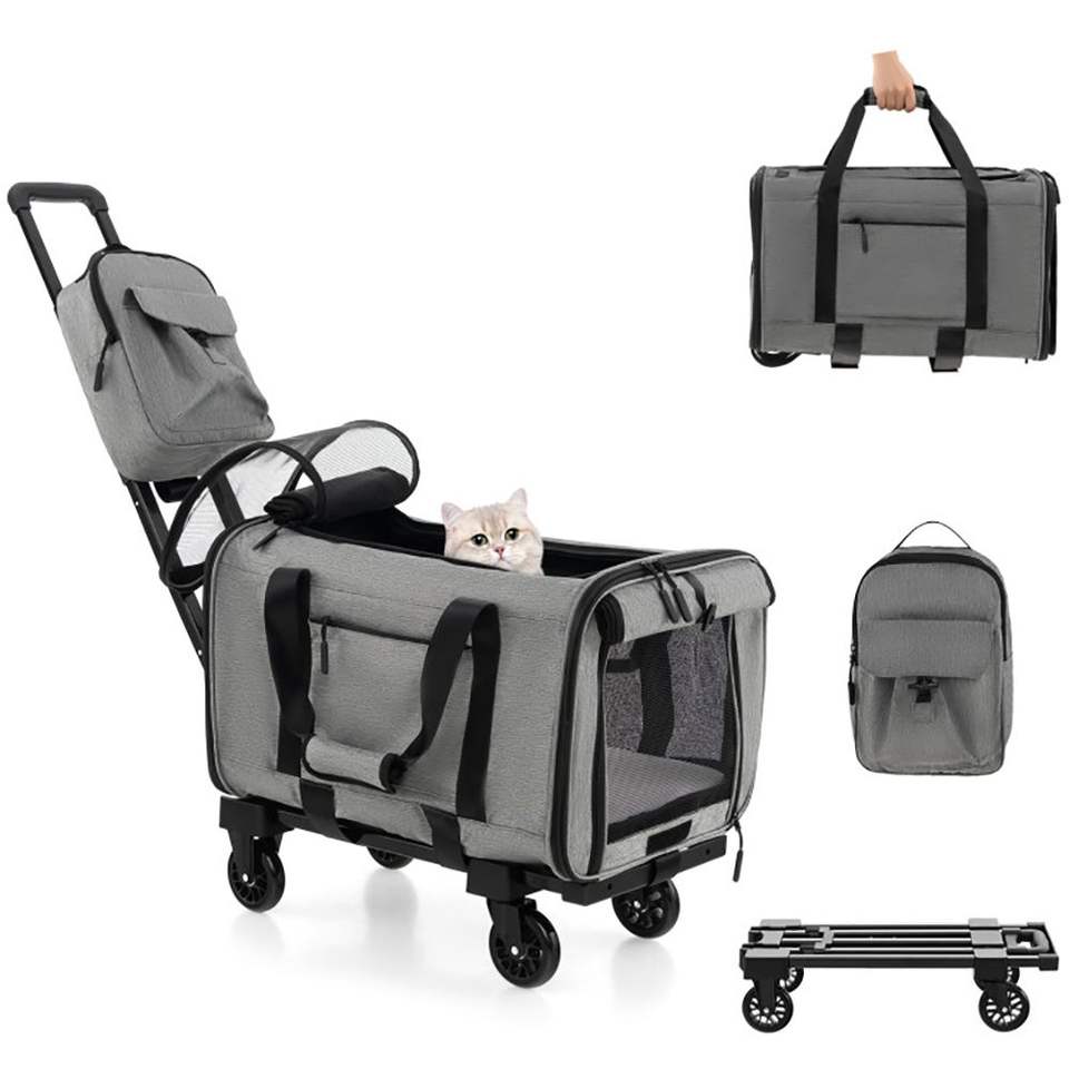 Trasportino per Gatti con Ruote per Uso Esterno e Interno, con Sacchetto per Lettiera e Tappetini per Animali Domestici