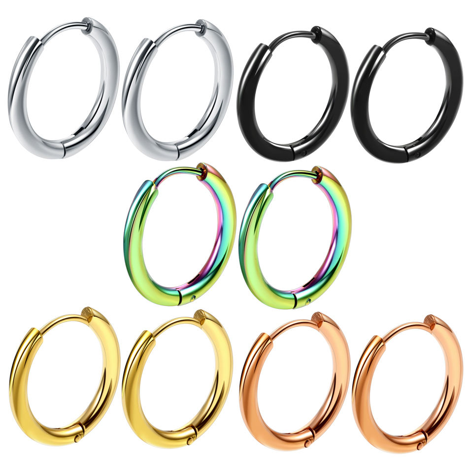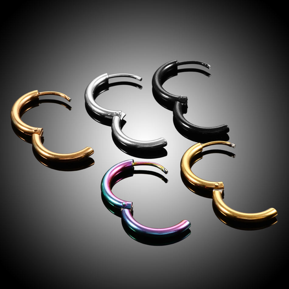 Orecchino a Cerchio Senza Saldatura in Acciaio Inox con Chiusura a Cerniera, Gioielli per il Corpo, 5 Colori, Piercing per Orecchie e Naso
