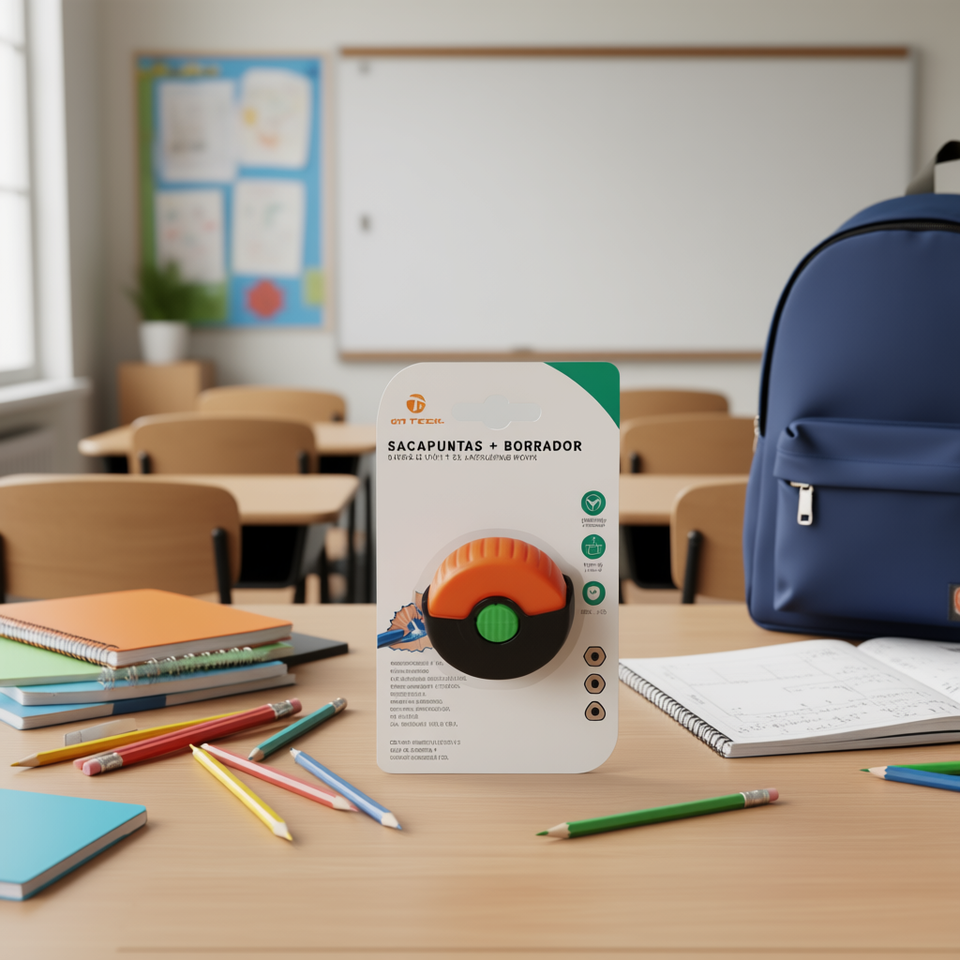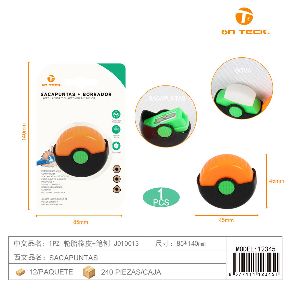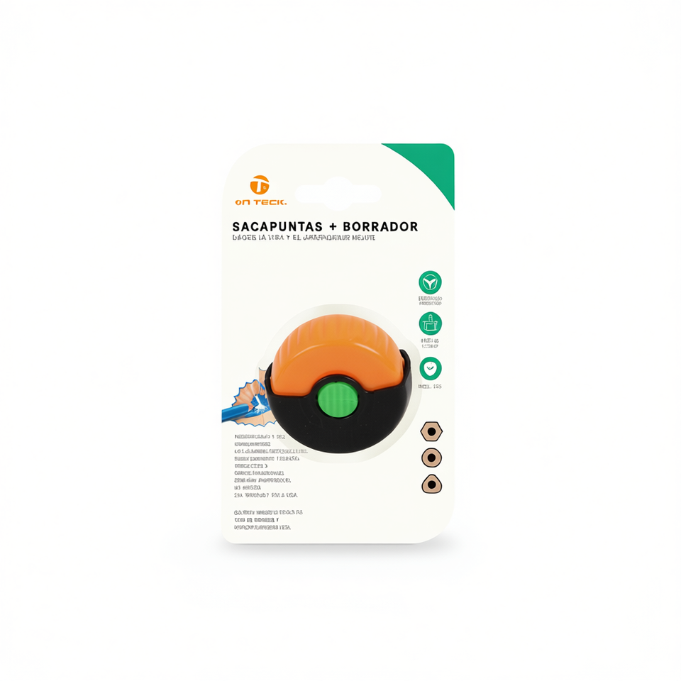 Temperino On Teck con gomma, meccanico manuale in plastica, per scuola e ufficio, misura standard