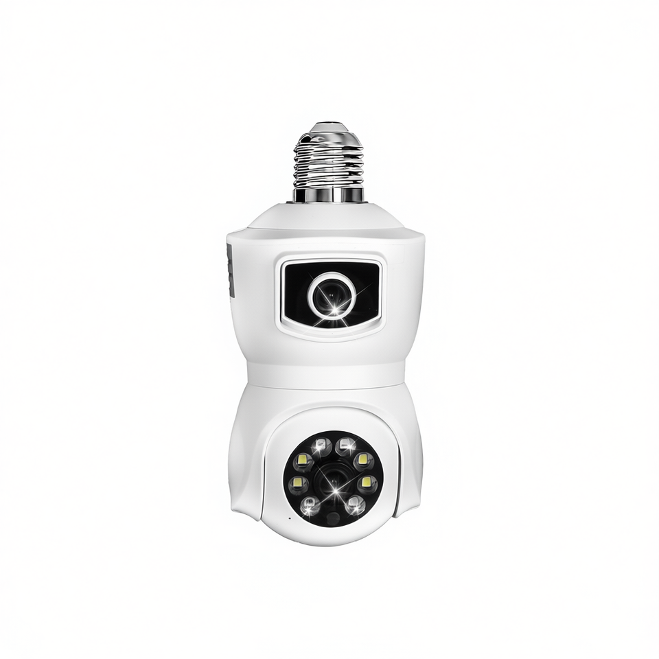 Telecamera di Sicurezza IP WiFi a Doppia Lente 1080P con Portalampada E27, Visione Notturna a Colori, Controllo APP, Rilevamento Umano AI per Sorveglianza