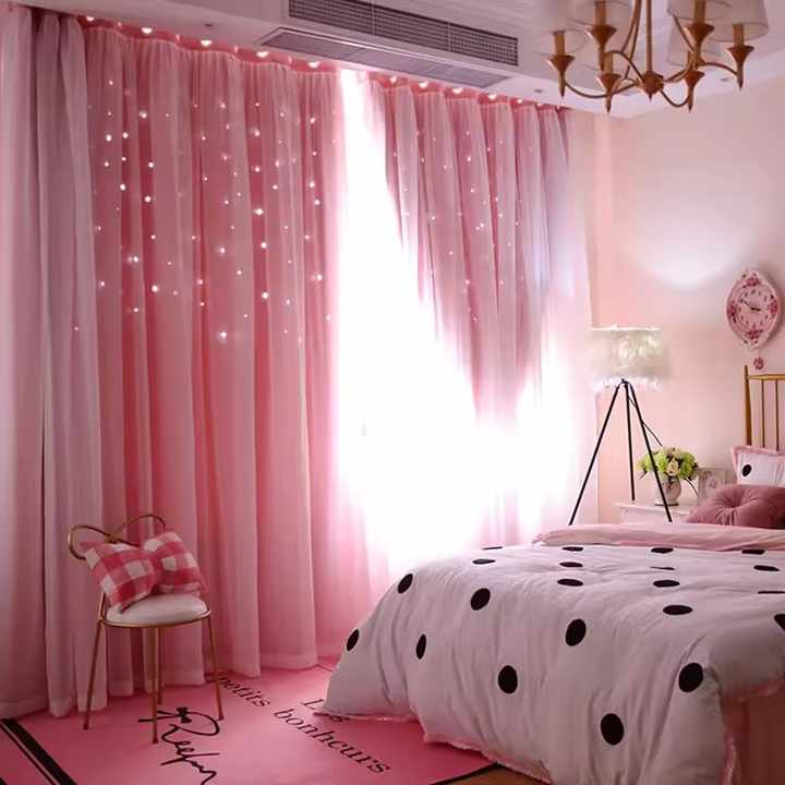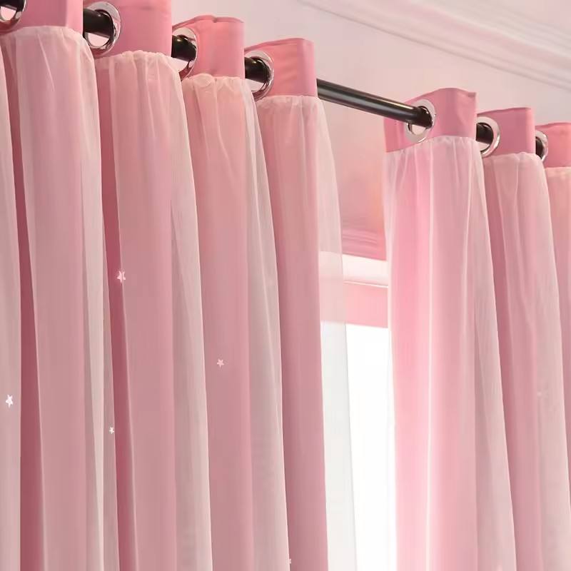 1Pc Girls Double Layer Hollow Out Stars Curtains Princess Romantic Bedroom Decor