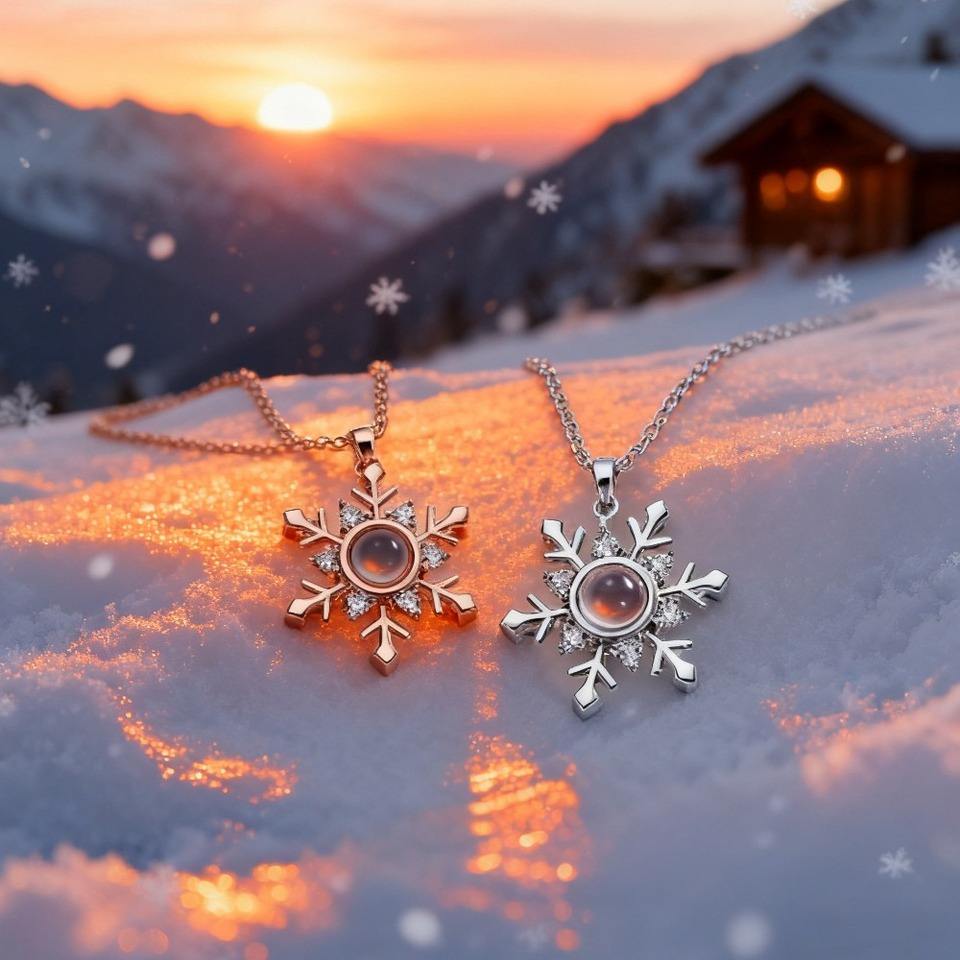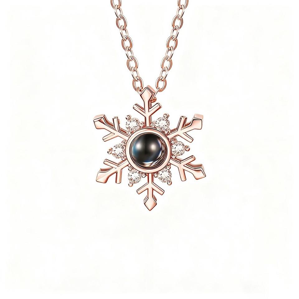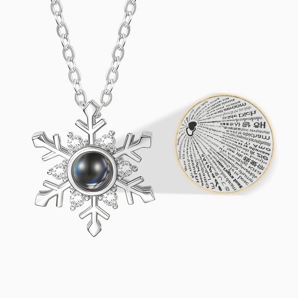 1Pc Zircon Copper Snowflake I Love You Pendant Necklace in Hundred Languages Sweet Romantic Ins Series Party & Christmas Gift