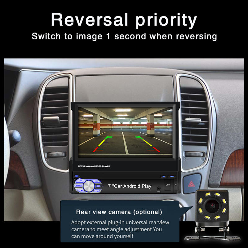 1din Car Radio CarPlay GPS Navigation 7" IPS Retractable Screen 1 Din Android 11 Multimedia Player Universal Audio Video No DVD