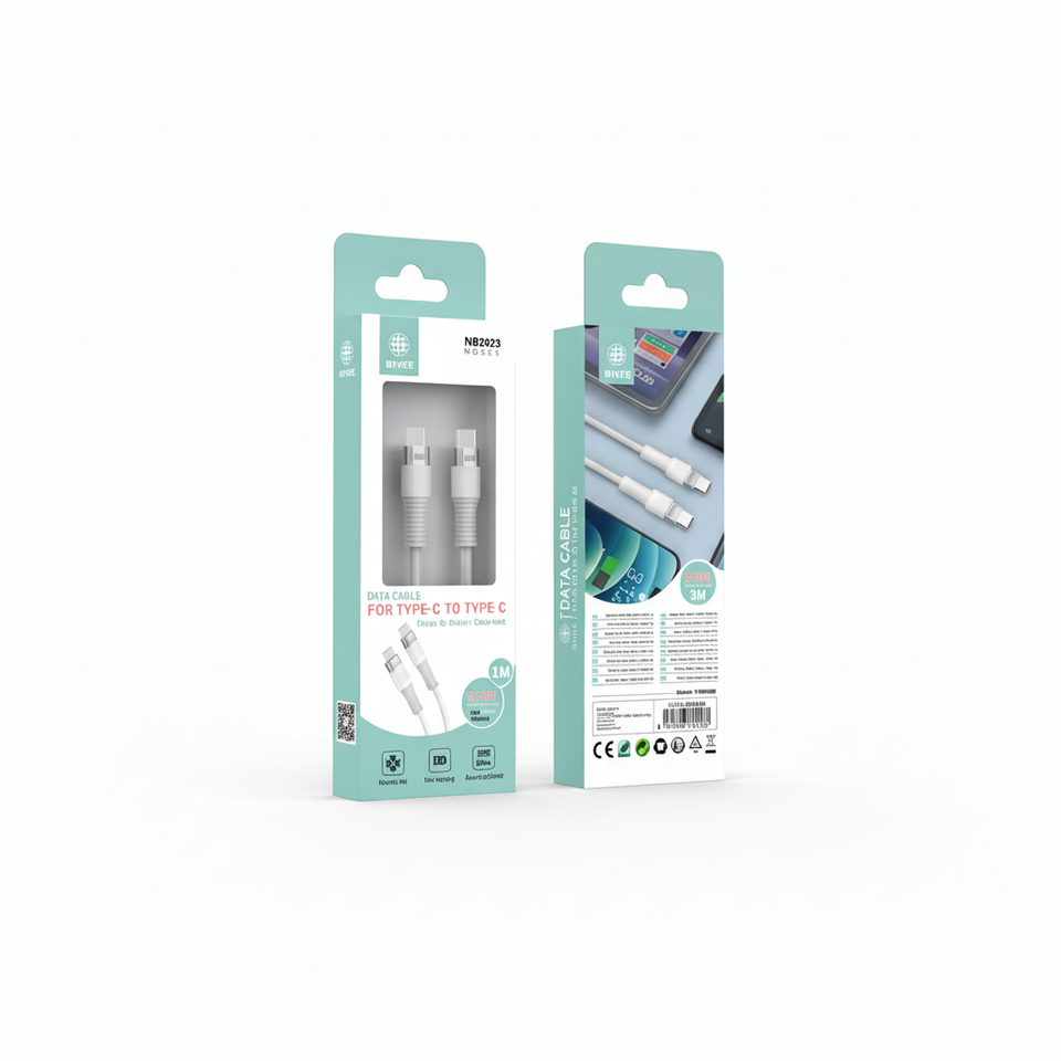 1m White TYPE-C to TYPE-C 60W Fast Charging Data Cable Super Speed Accessory for Charging and Data Transfer