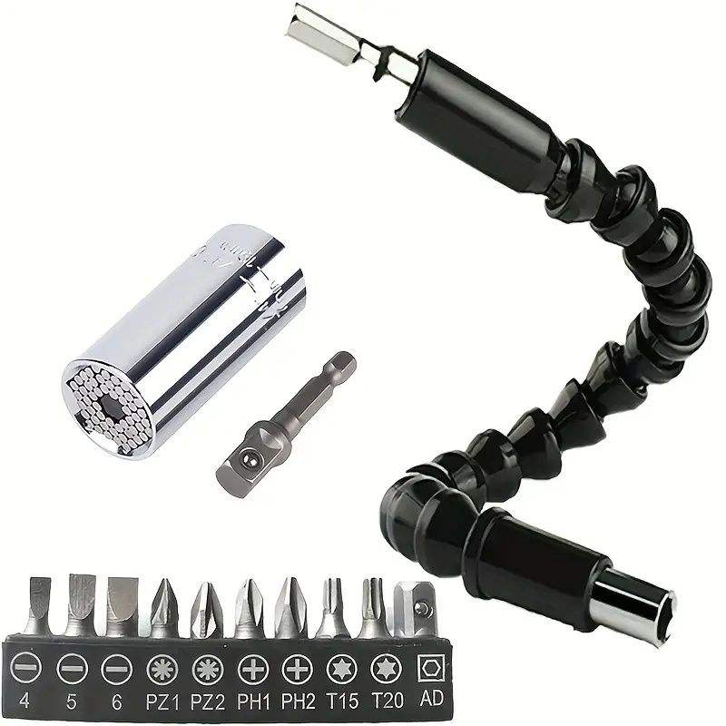 1 adattatore universale per trapano elettrico flessibile da 11,6 pollici con chiave a bussola auto-regolante per cricchetto standard