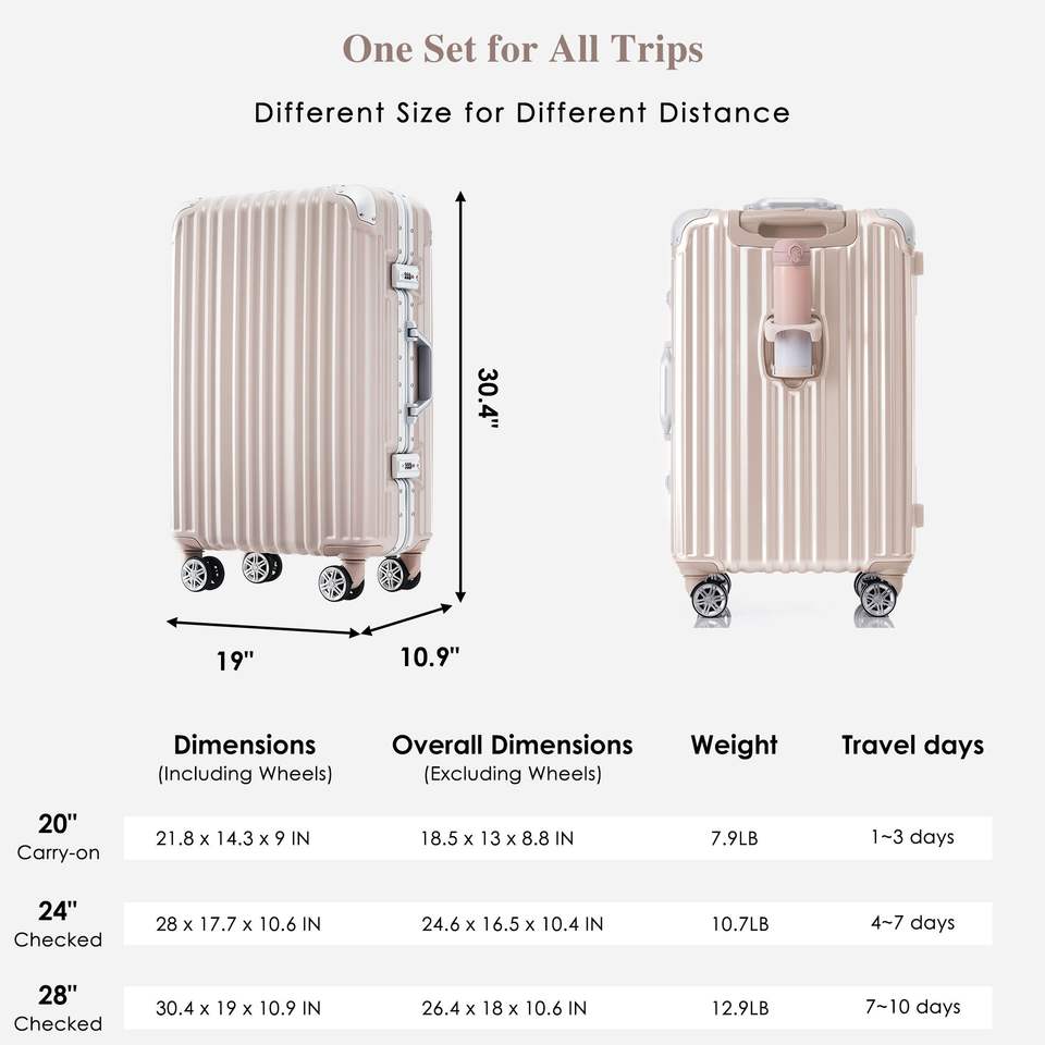 1pc 24in Aluminum Frame Luggage USB Port Vacation Carry-On Suitcase Spinner Wheels TSA Lock Travel Trolley Case Short Business