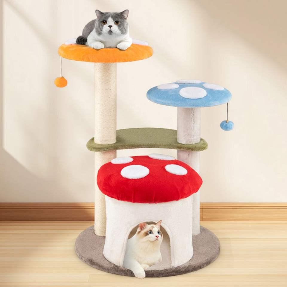 Torre per Gatti Alta 35 Pollici con Posti di Tiraggio in Sisal, Cuccia e Piattaforme Imbottite