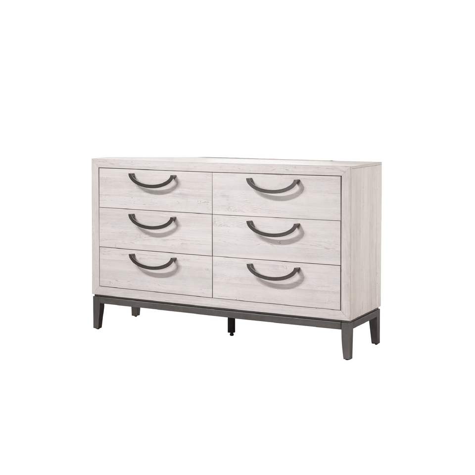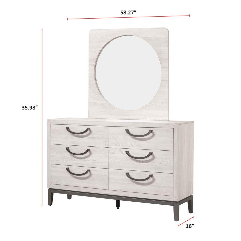 1pc Contemporary Dresser with Unique Design Solid Wood 6-Drawers Bedroom Furniture Beige White Finish