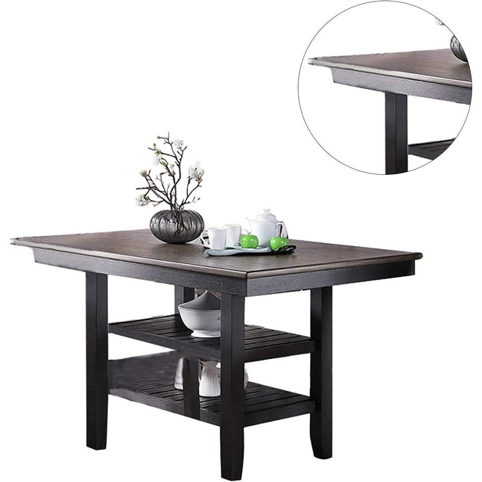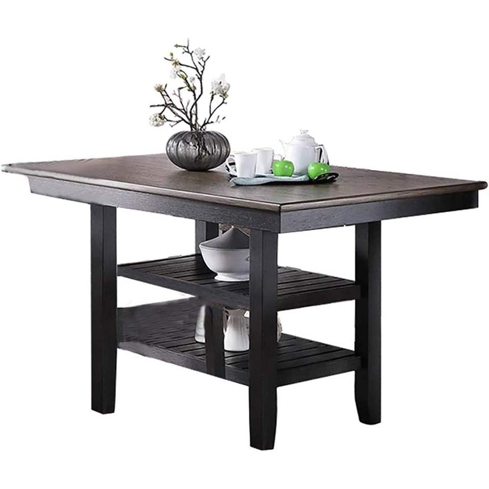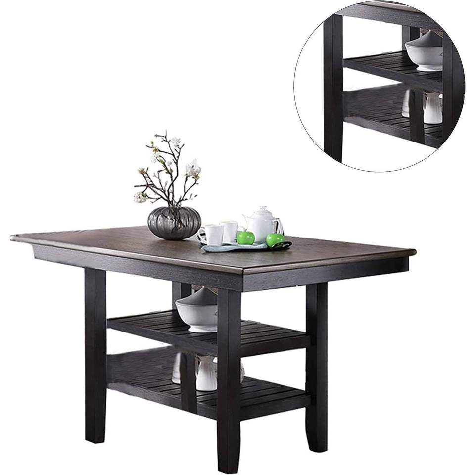 Tavolo da Pranzo Alto con 2 Ripiani Portaoggetti, Finitura Caffè Scuro, Arredamento per Cucina e Colazione in Legno di Gomma